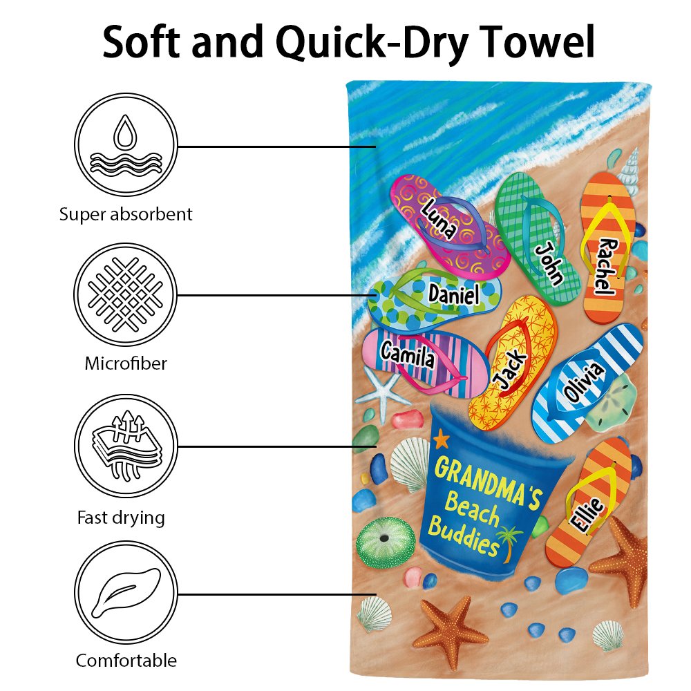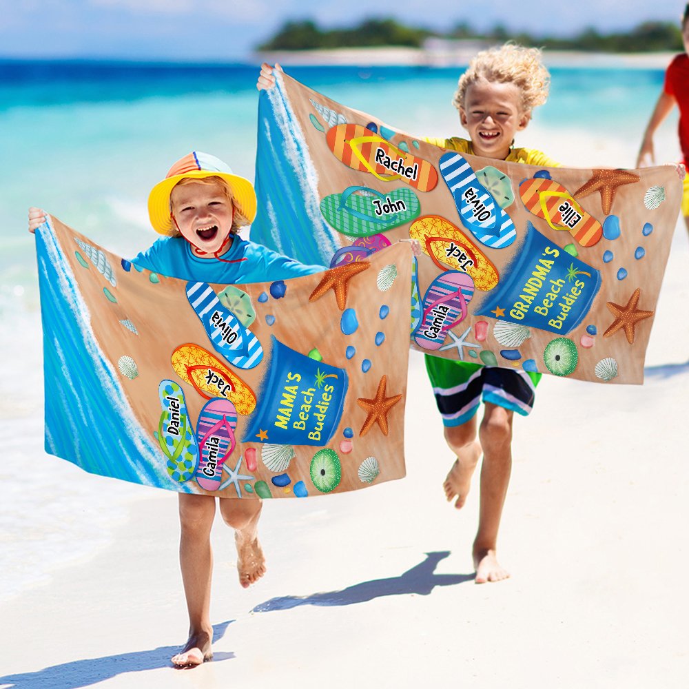 This delightful beach towel features an option to customize names on slippers. You can add up to 1-8 names and slippers to make the gift more Personalized. It’s a delightful way to celebrate family bonds and will undeniably add a fun element to every beach day.