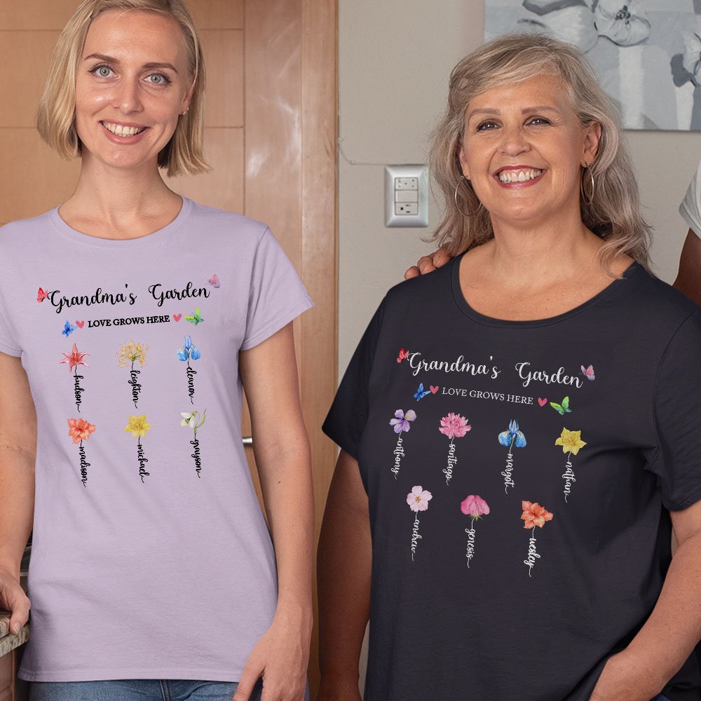 Our garments are available in both short-sleeve t-shirt and sweatshirt options, offering versatility for grandma's or mom wardrobe. Whether it's spring, summer, fall, or winter, whether you're out running errands or relaxing at home, the happiness between you and your kids will always surround you.