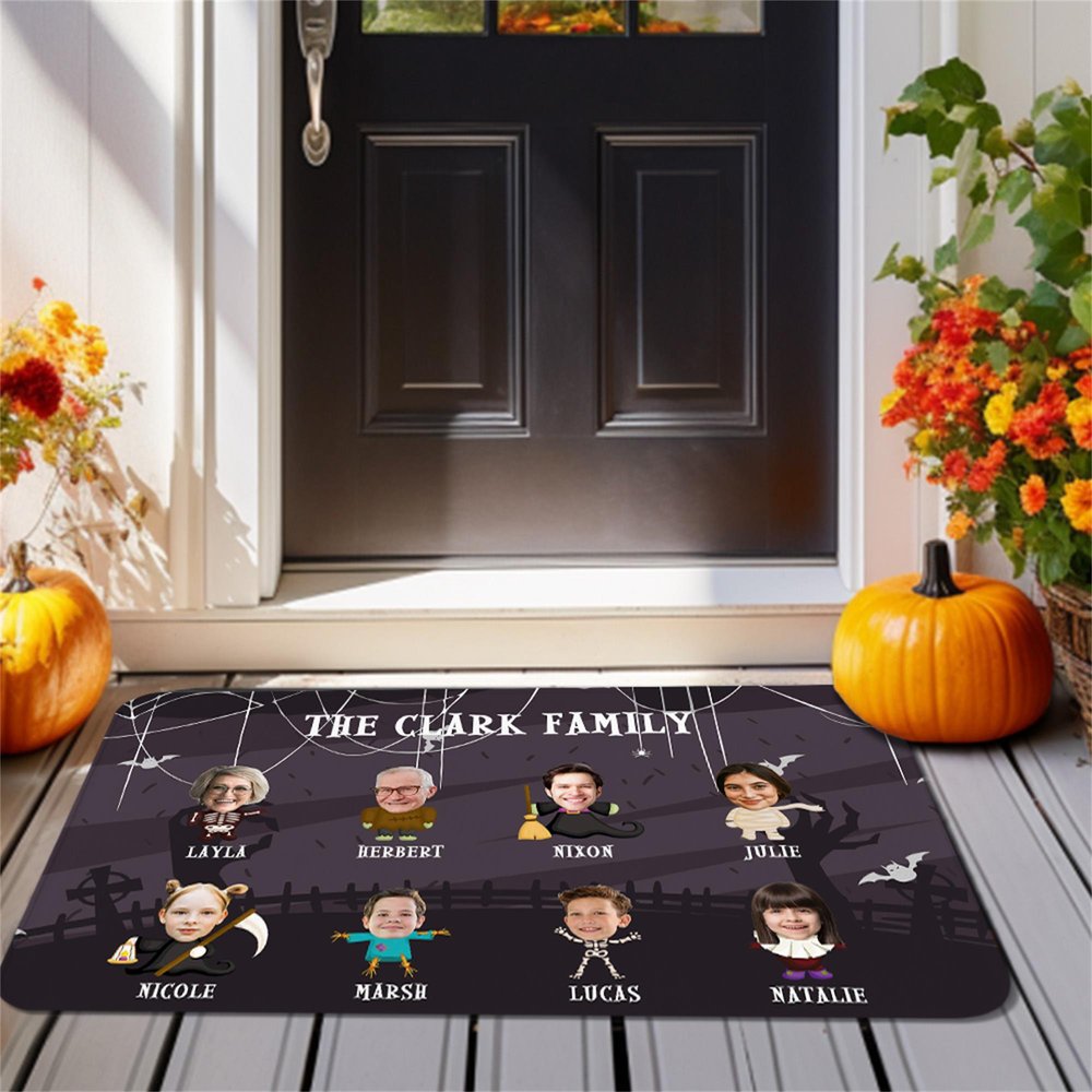 This doormat is inspired by Halloween, cleverly incorporating classic holiday elements like ghosts, spiderwebs, and bats. Customizable with avatars and Halloween costumes, it evokes the festive spirit. Each family member can be dressed in 18 different Halloween costumes, and even customized with a name, perfectly blending family personality with festive spirit, making your doorway an eye-catching Halloween decoration.