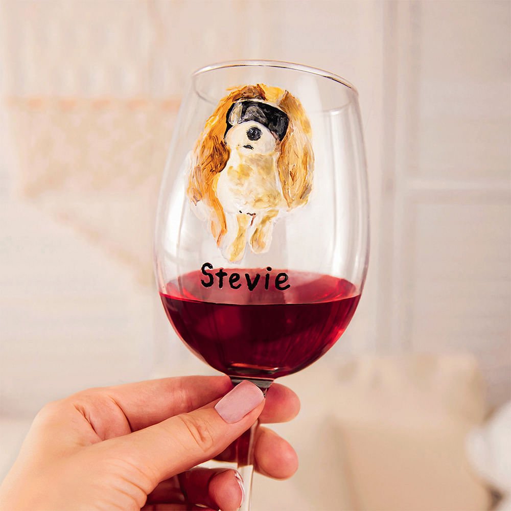 Each glass is hand-painted with meticulous detail, ensuring the pet portraits are lifelike and vibrant. This artistic touch makes your wine glass a drinking vessel and a cherished keepsake that adds personality and charm to your home.