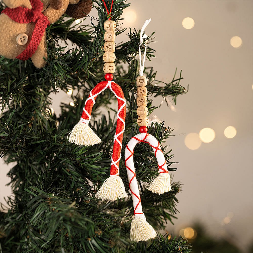 Each Sweets cane decoration is meticulously wrapped; names can be customized on each piece, ensuring a delightful presentation when gifted or displayed.