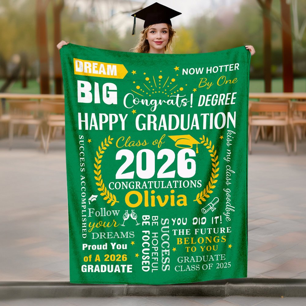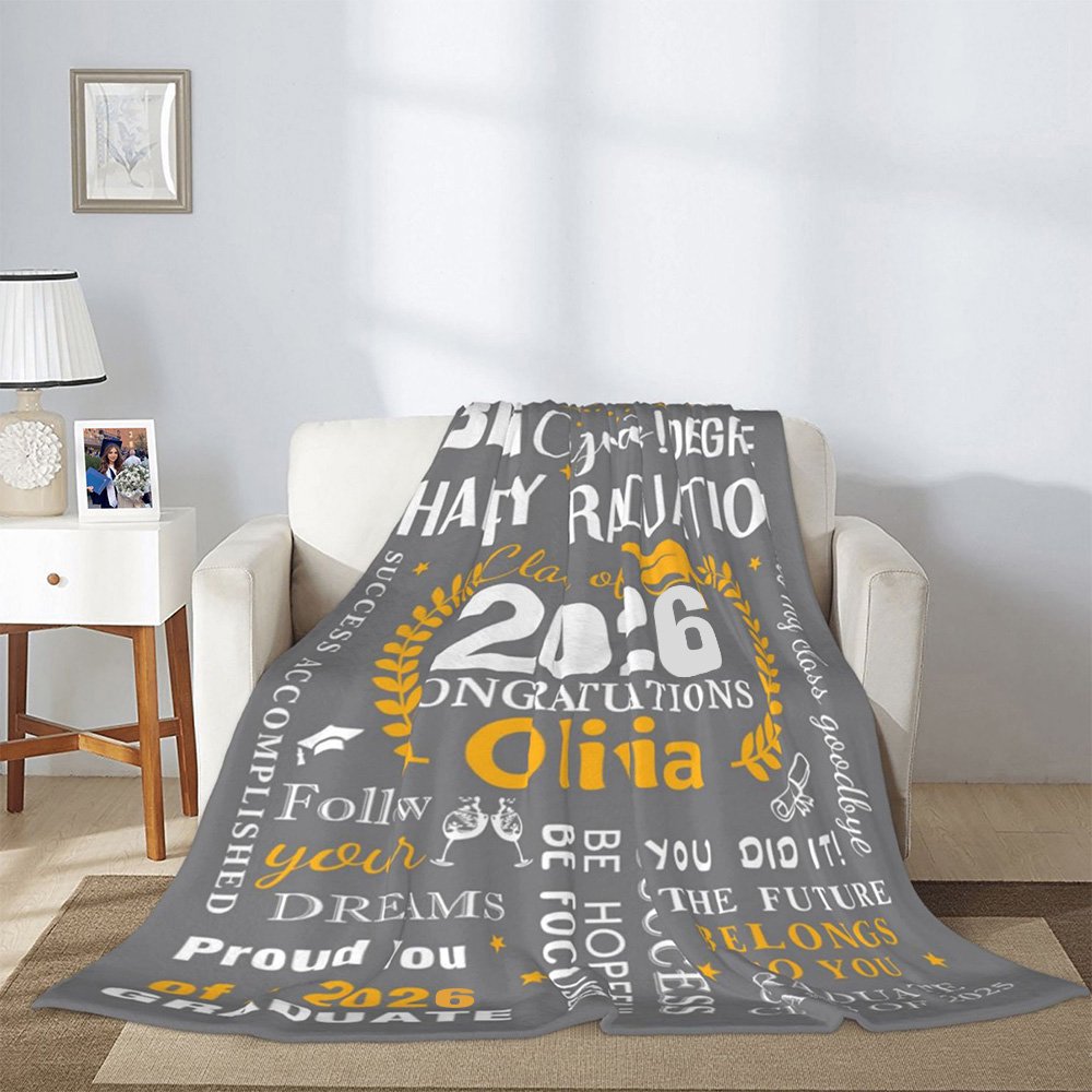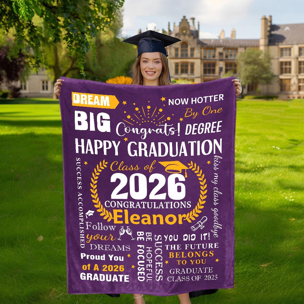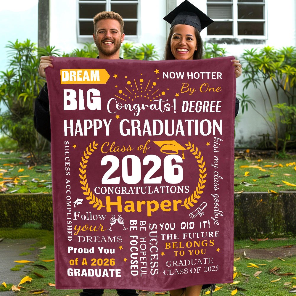 Our personalized graduation blanket is the perfect gift for graduates, family, and friends. It not only commemorates their accomplishments but also offers daily comfort and warmth. Whether as a graduation present, birthday gift, or for any special occasion, it brings joy and sentiment and serves as a cherished keepsake for years to come.