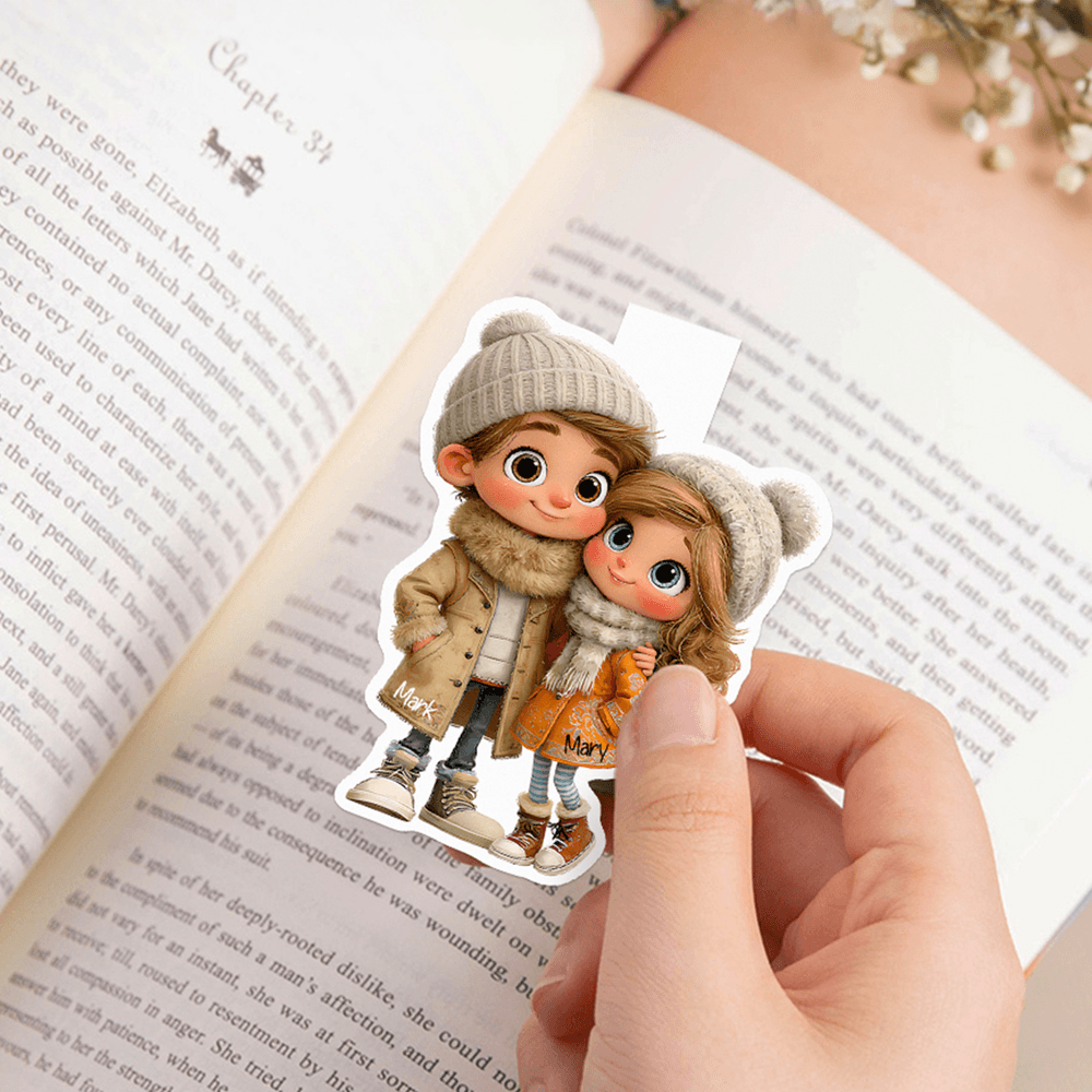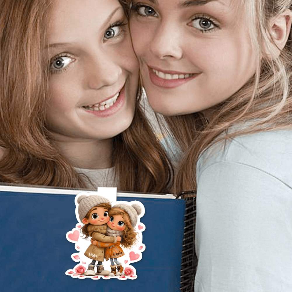 This charming magnetic bookmark features adorable cartoon figures of a couple or sisters in a warm embrace, symbolizing love and unity. Customization options allow you to add names, creating a unique keepsake that beautifully represents your bond and adds a personal touch to your reading experience.