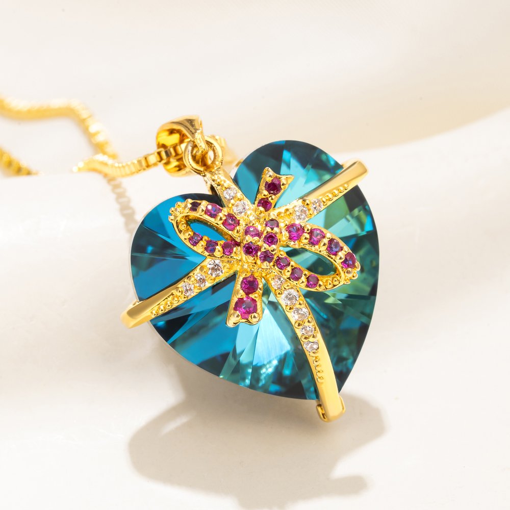This necklace features a heart-shaped gemstone pendant adorned with an exquisite bow, symbolizing heartfelt commitment. You can also customize it with birthstones, making each piece uniquely meaningful—a perfect expression of individuality and graceful charm. More than a necklace, it's a timeless keepsake of love, forever luminous.