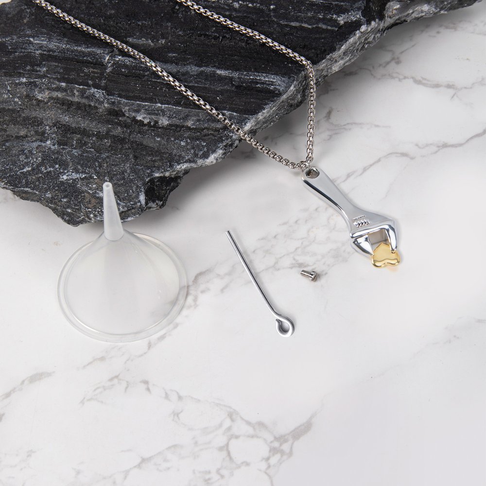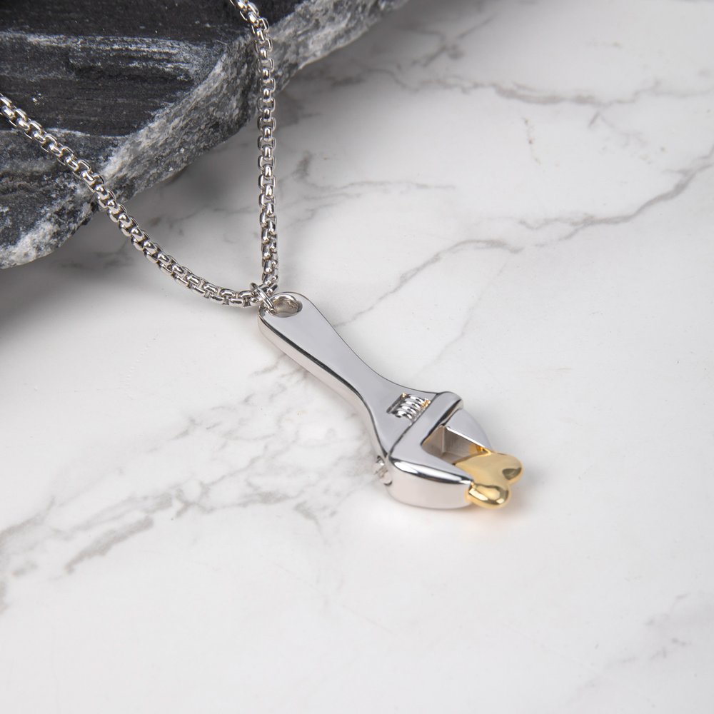 | Feature: | Lustrous Shine, Durable, Memorial Jewelry, Wrench with Heart Design |