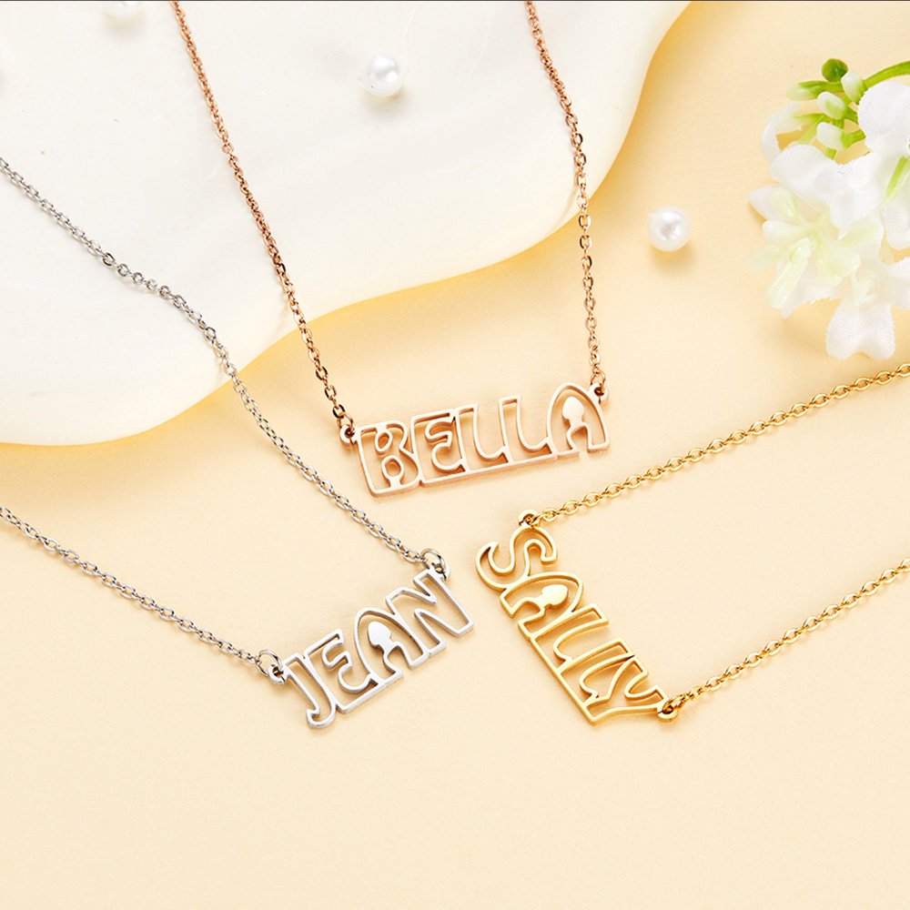 The standout feature of this necklace is its captivating hollow letter design. Each letter of her name is carefully crafted, creating a chic and eye-catching pendant. The hollow design adds a touch of sophistication, allowing her name to shine through when she wears it.