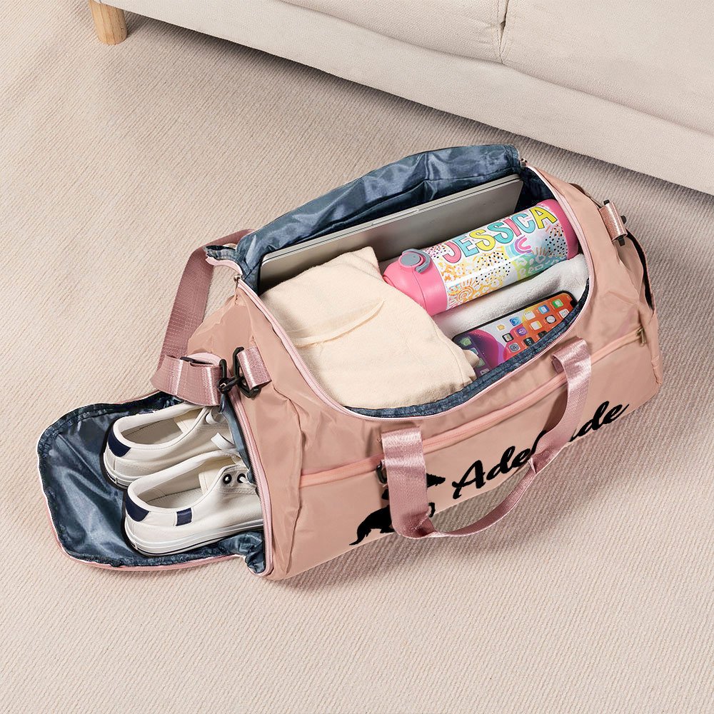Traveling with this bag is a breeze! The adjustable shoulder strap and the convenient luggage trolley sleeve make it easy to attach to your suitcase handle, ensuring a smooth journey. Whether off to the barn, a horse show, or a casual day out, this duffle bag is your perfect travel companion.