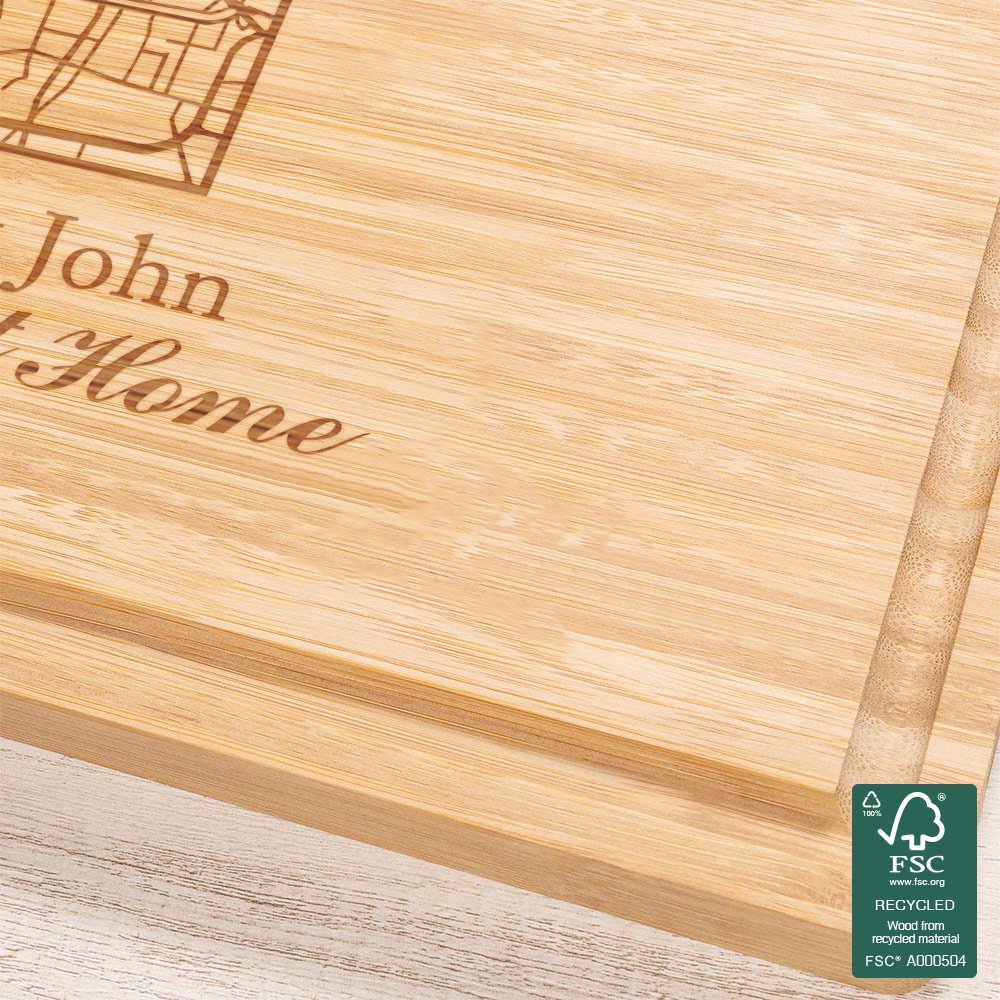 Every place in the world is unique. Our cutting boards feature a unique, Personalized map design that tells the story of you and your home. You can Personalise it by searching for your home address and adding your name, text, and date underneath the house to create a warm kitchen accessory.