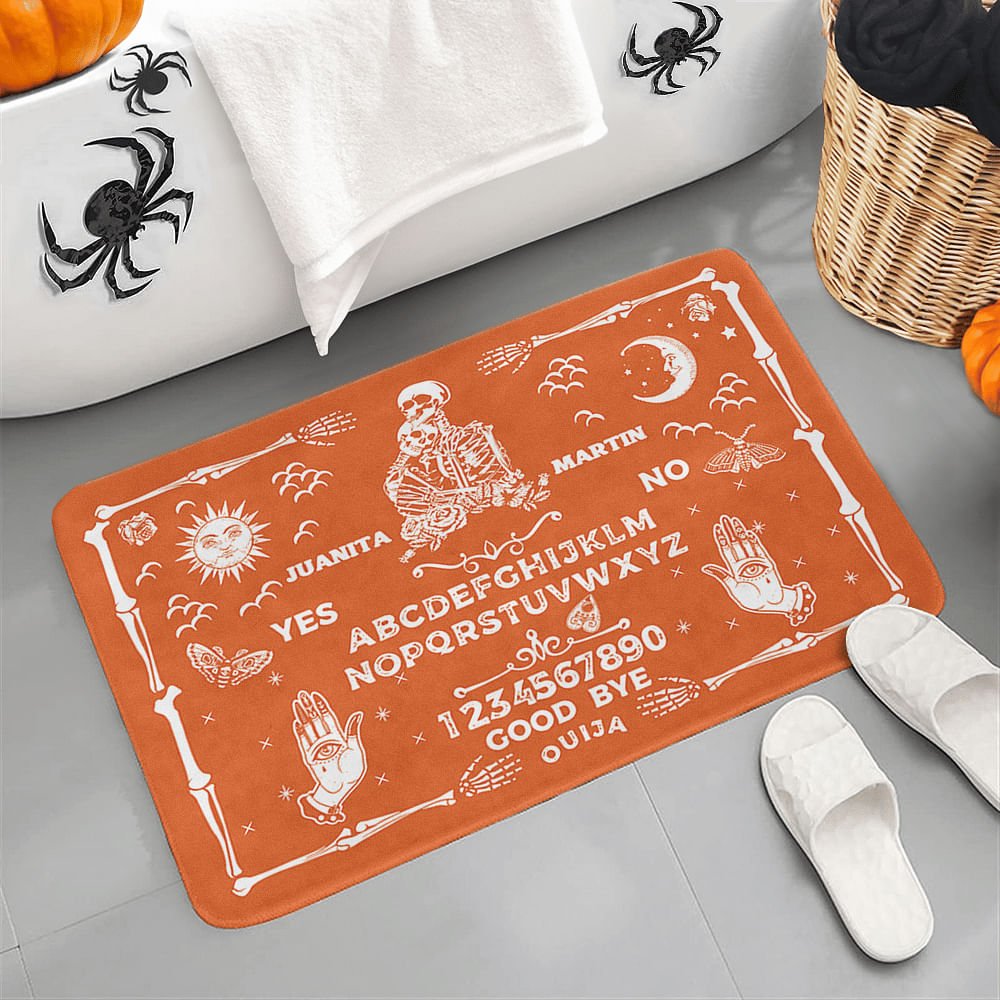 This Ouija board-themed doormat, with its unique sun, moon, and hugging skeleton patterns, combined with a customizable Gothic-style name, shows extraordinary personality and mystery.