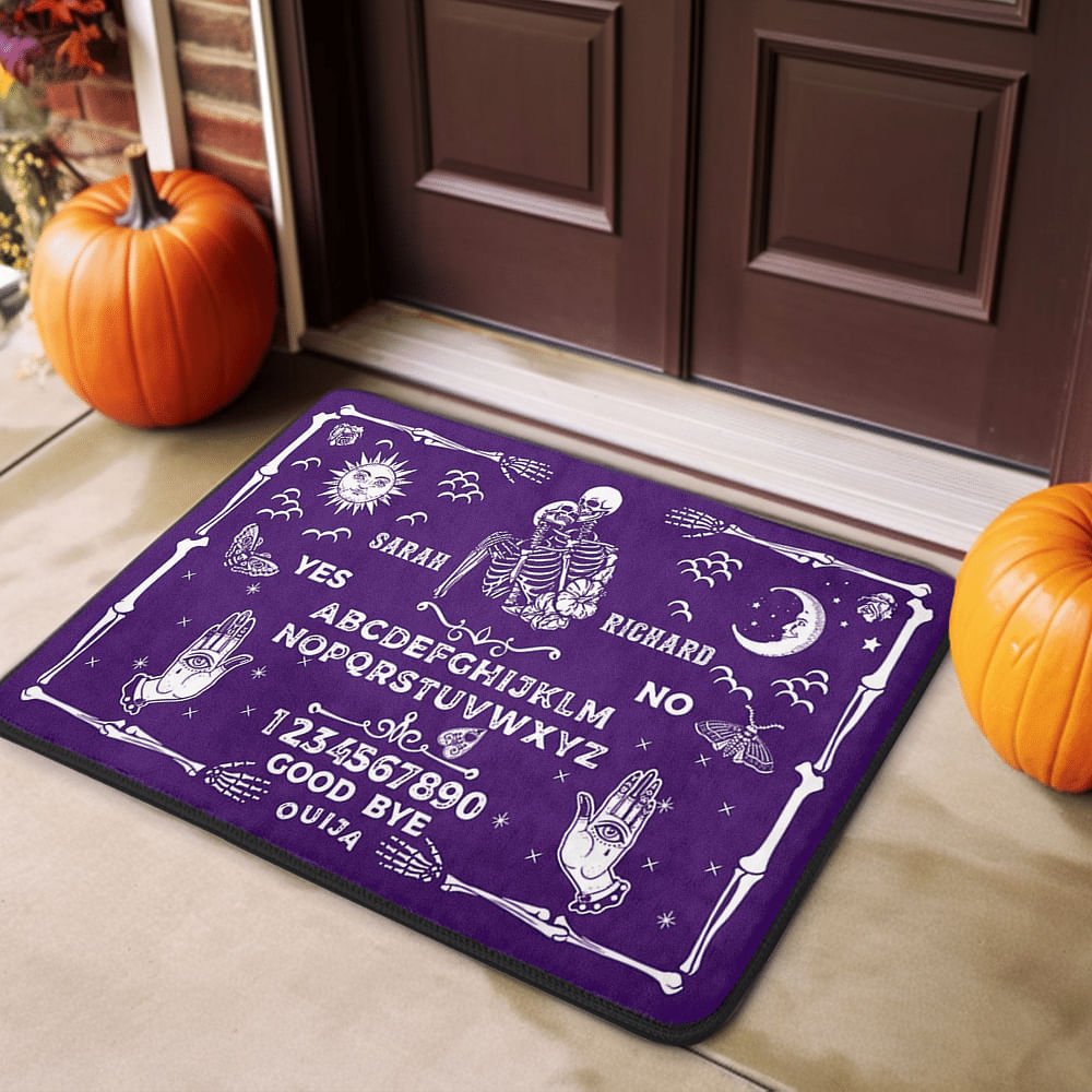 Personalized Hugging Skeleton Ouija Board Doormat with Name Gothic Home Decor Halloween Gift for Couple Divination Enthusiasts