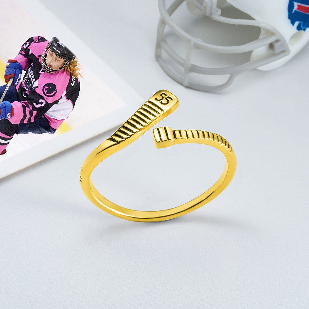 Personalized Engraved Ice Hockey Ring with Number Birthday Team Gift for Women Hockey Player