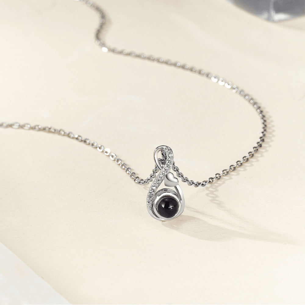 The necklace features a three-dimensional infinity symbol as its core design, adorned with sparkling zirconia and heart motifs. It combines luxurious texture with romantic symbolism, representing the eternal continuity of affection and memories. The pendant supports custom engraving and photo storage, allowing precious commemorative images to be preserved within, transforming the necklace into a “wearable memory box.”