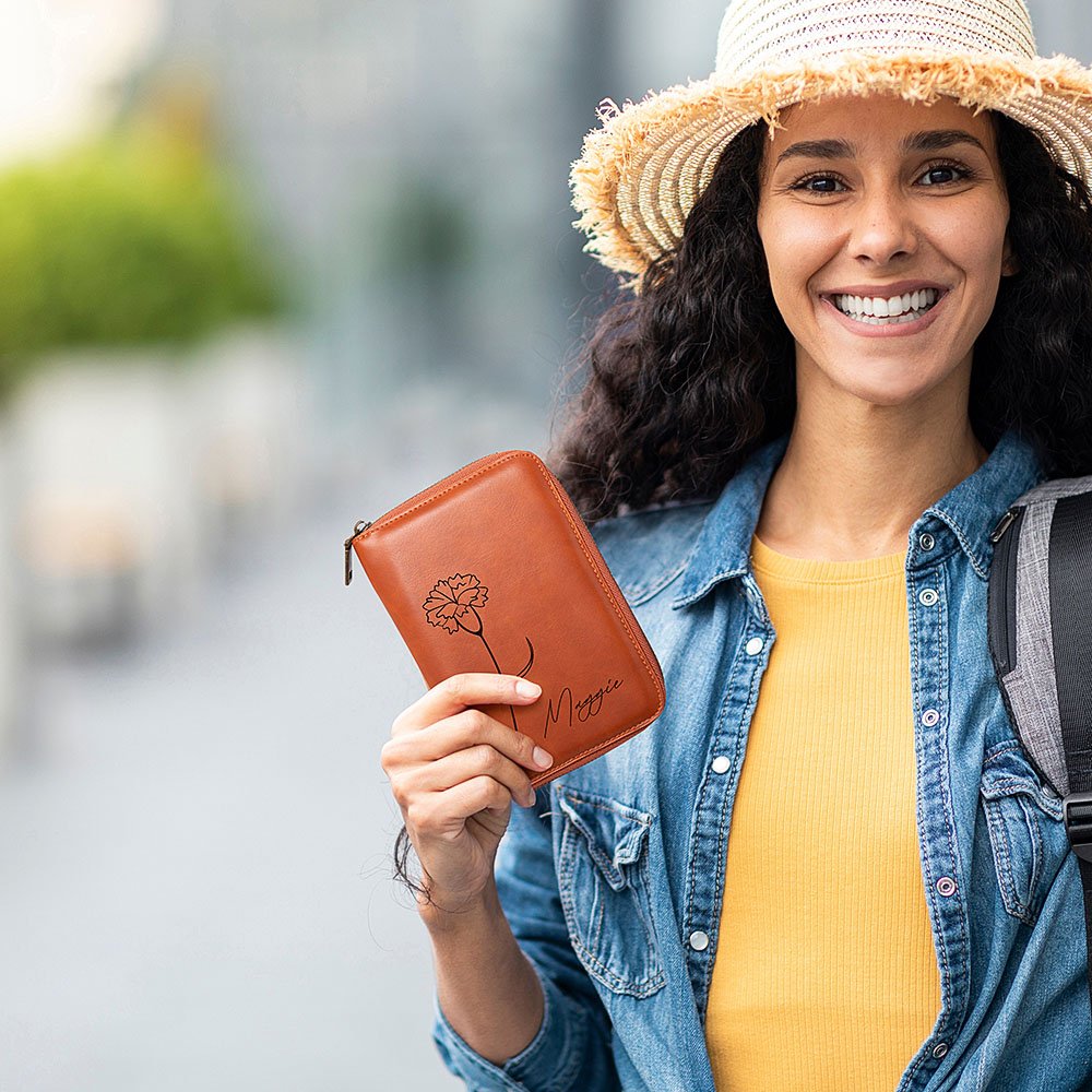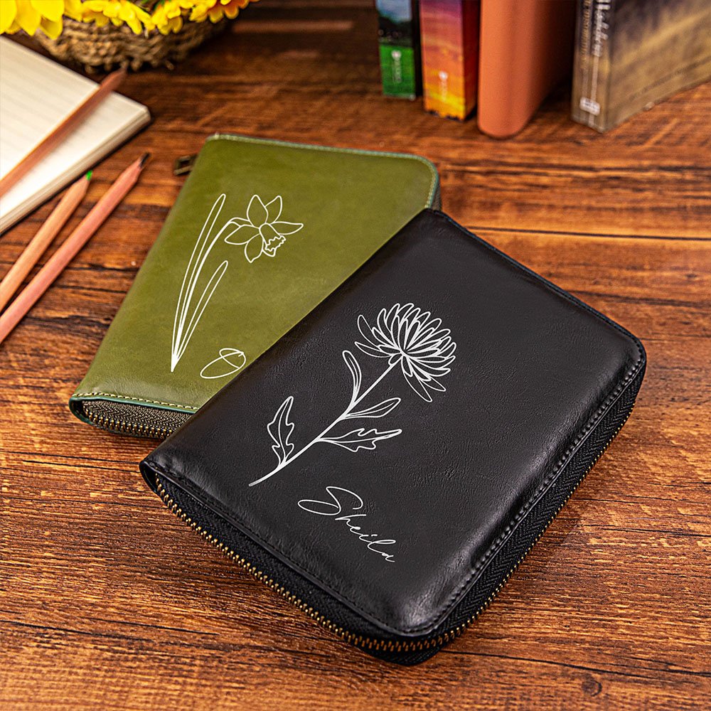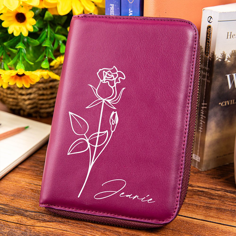The beautiful birth flower pattern combined with the unique texture of the leather creates a noble and luxurious feeling. Adding a Personalized name adds a special touch, making it a truly unique gift.
