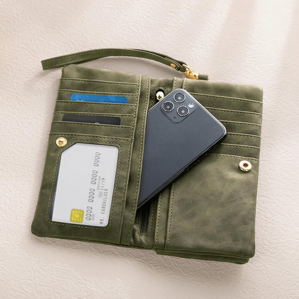 Its tri-fold layout includes multiple card slots and compartments to organize cards, cash, coins, receipts, and IDs—all your daily essentials neatly in one place. The attached wrist strap allows for easy carrying by hand or storage in a bag, adapting smoothly from shopping trips to casual outings. With smart organization and easy access, it combines style with everyday practicality.