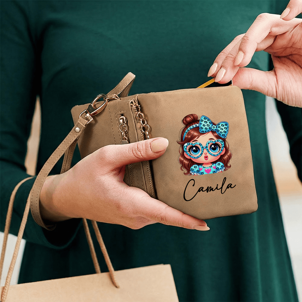 This wallet features a playful cartoon girl design paired with a leopard-print bow, blending sweet and edgy aesthetics to capture both youthful charm and individuality. It supports custom name personalization, merging cute design with personal identity. More than just a functional accessory for daily use, it’s a stylish statement piece that adds a touch of personalized cuteness every time you take it out.