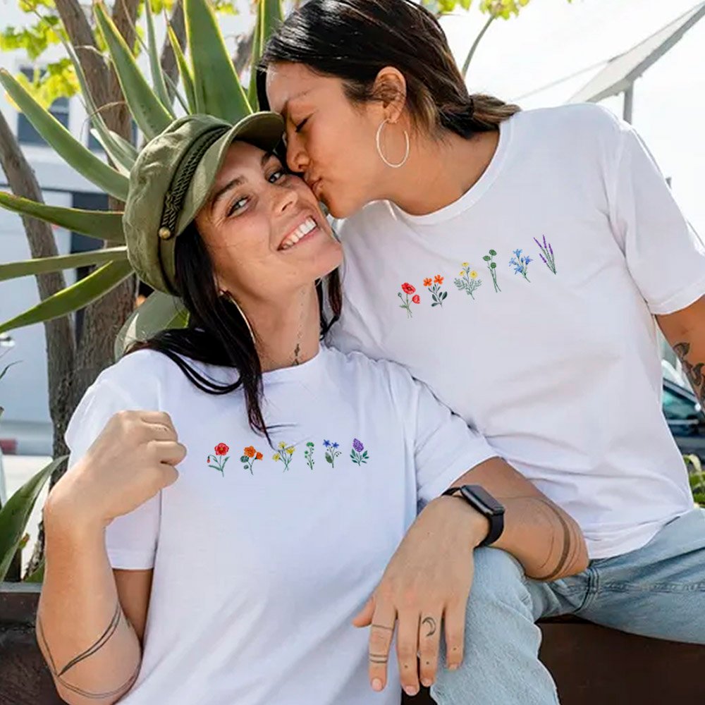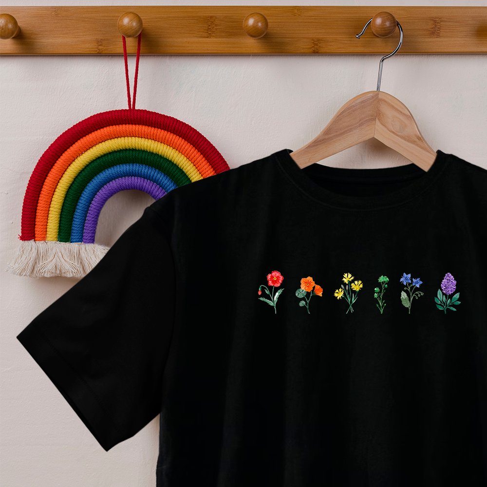 Are you searching for the perfect t-shirt to celebrate or show your support for the rainbow flag, transgender, homosexual, or gay pride community, then this cool LGBT t-shirt design is just for you. With 6 colours of flowers representing the gay rainbow, expressing love with details should not be discriminated against because of gender. Perfect for the month of June, gay pride month, it is a great time to wear rainbows and celebrate your pride.