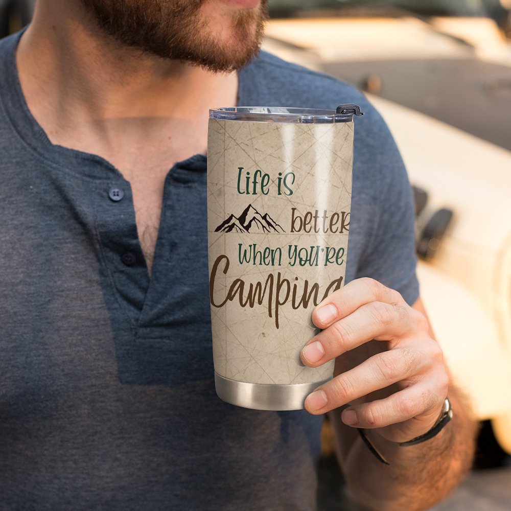 Personalized Life Is Better When You are Camping with Your Partners Couple Drink 20oz Tumbler for Hot and Cold Drinks Special Gift for Family Lover