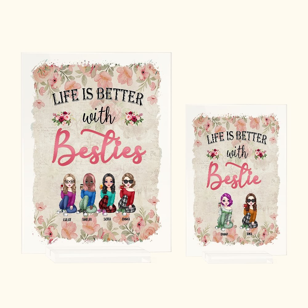 Personalised Life is Better with Besties Vintage Rose Design Acrylic Plaque Friendship Gifts for Soul Sisters Women