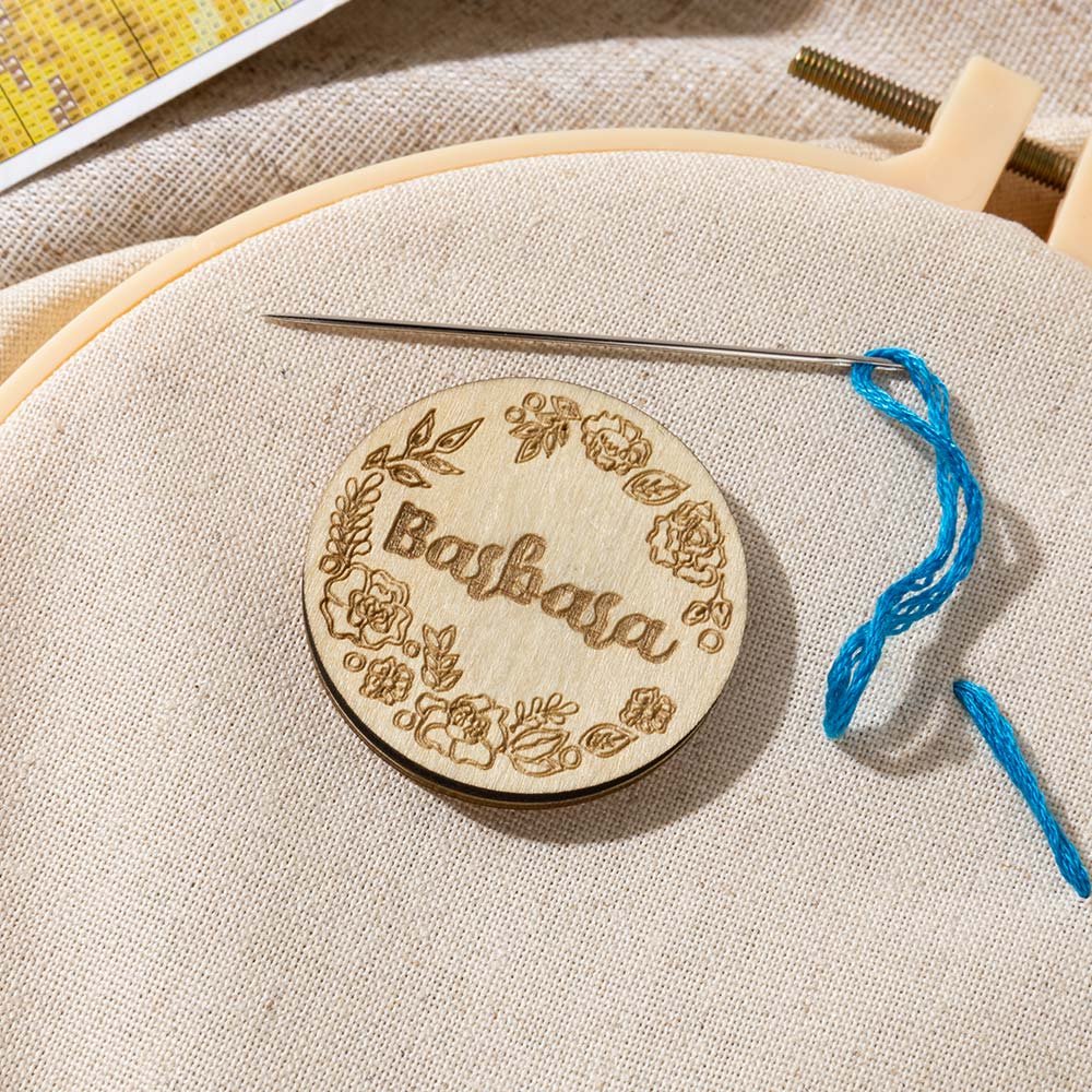 Add a personal style to this needle holder by having it engraved with a beautiful flower design and the recipient's name. The intricate engraving adds an elegant and customized element, making it a cherished keepsake for any sewing lover.
