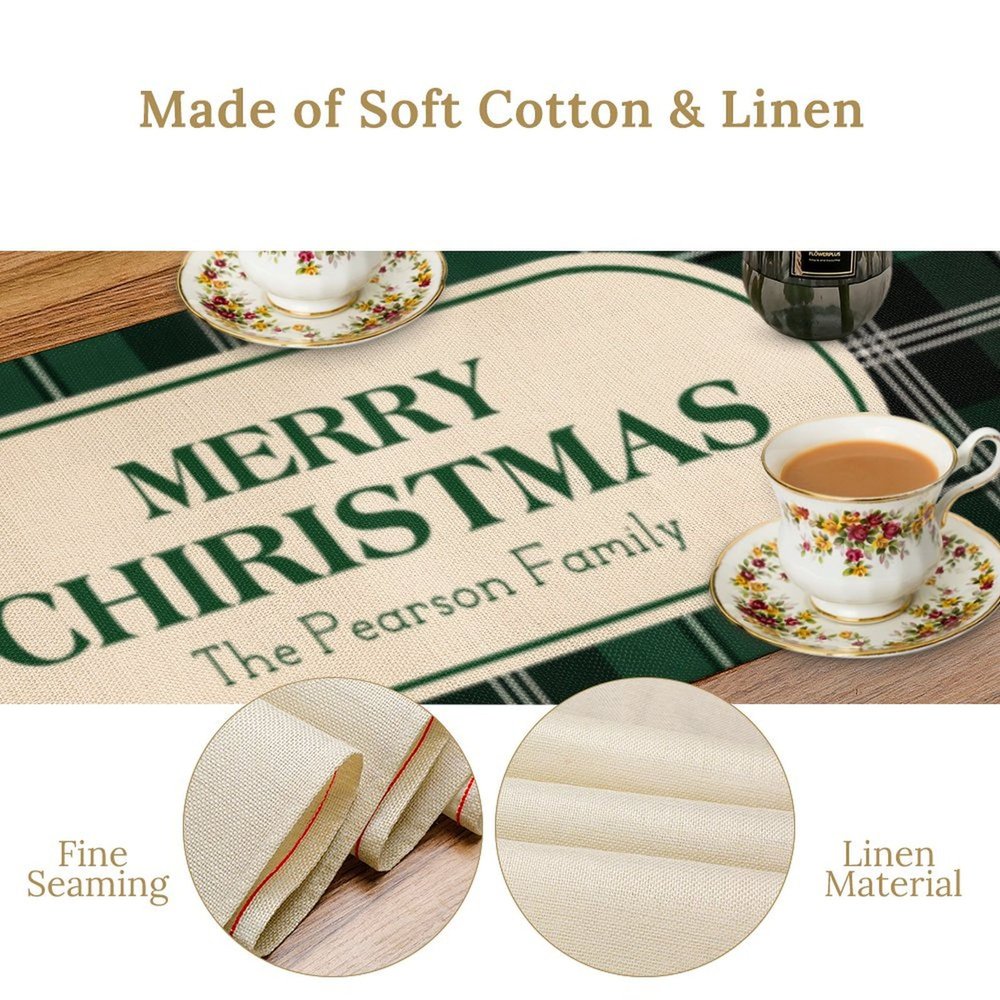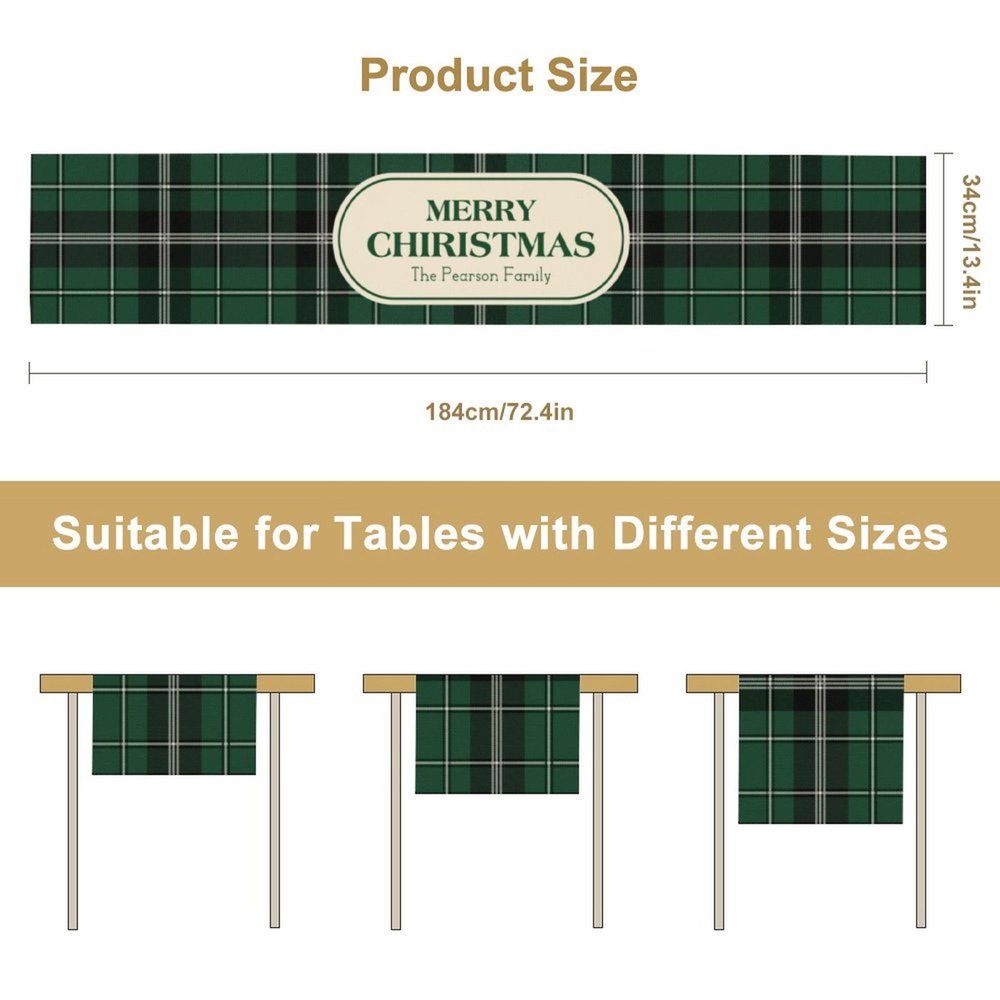 This table runner features a classic red and green checkered background, cleverly incorporating Christmas motifs. A centrepiece "MERRY CHRISTMAS" and can be customized with text. The red and green colour scheme echoes the traditional Christmas theme. Meanwhile, the sophisticated checkered pattern avoids visual monotony, instantly elevating the festive tablescape and creating a natural focal point for any gathering.