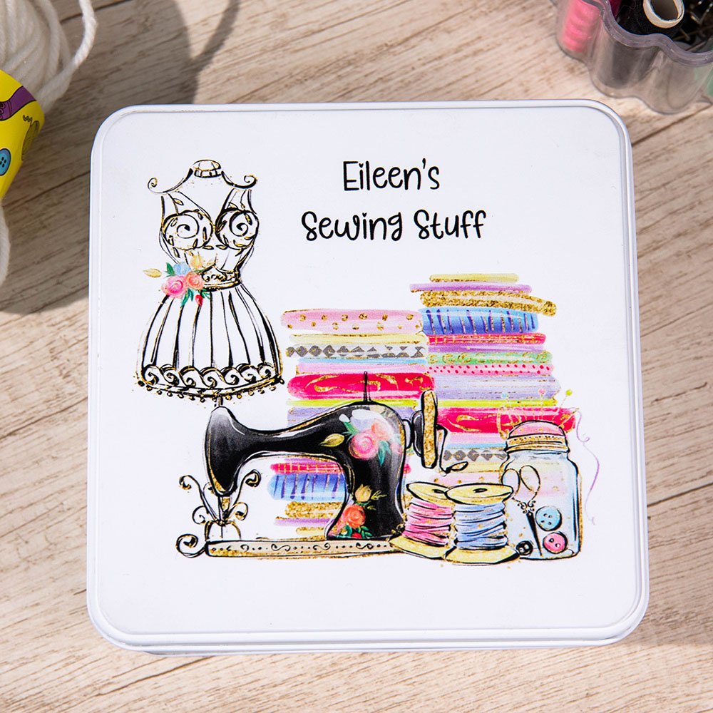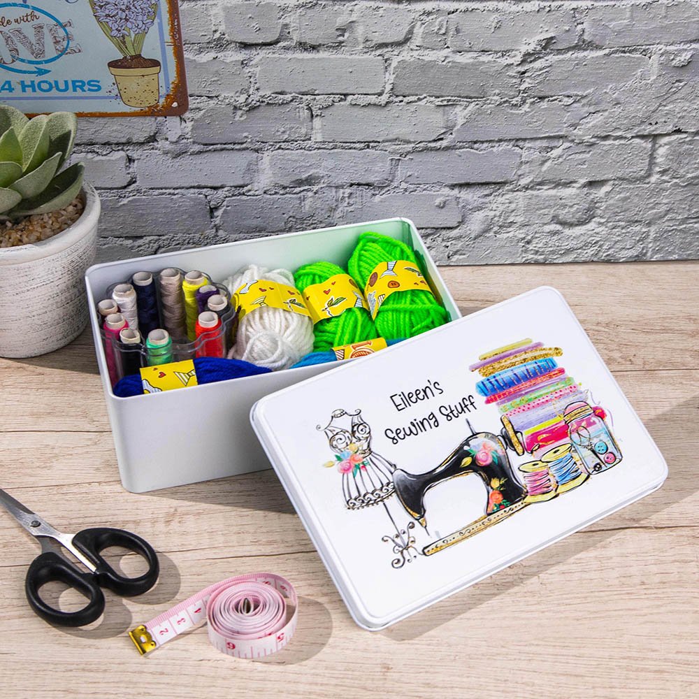 This cute storage tin will hold any sewing accessories, tools, pins, bobbins, scissors, or other necessities. The tin is printed with UV ink, a professional quality printing technique, which means your print will not fade, peel, or scratch.