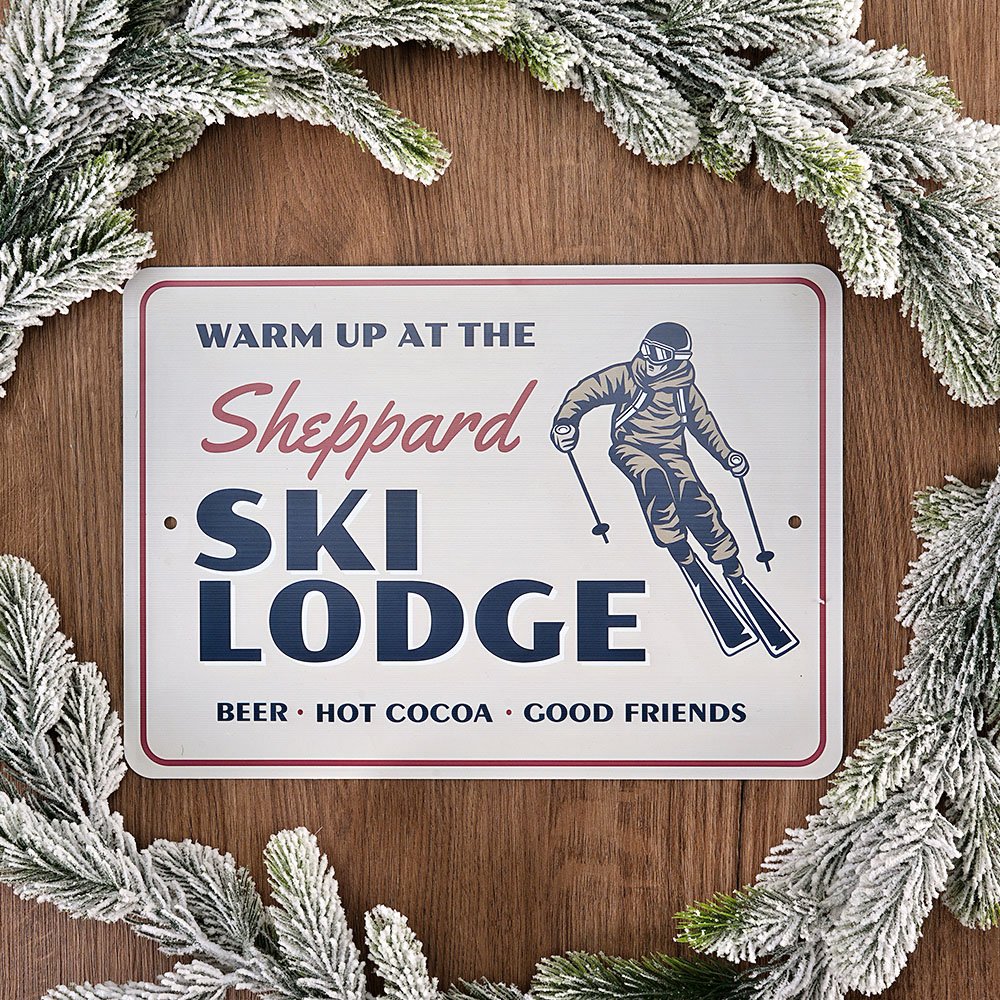 Personalised Metal Ski Lodge Sign with Location and Name Wall Art Skiing Decor Winter Sports Birthday Gift for Ski Lodge Owner Ski Enthusiasts