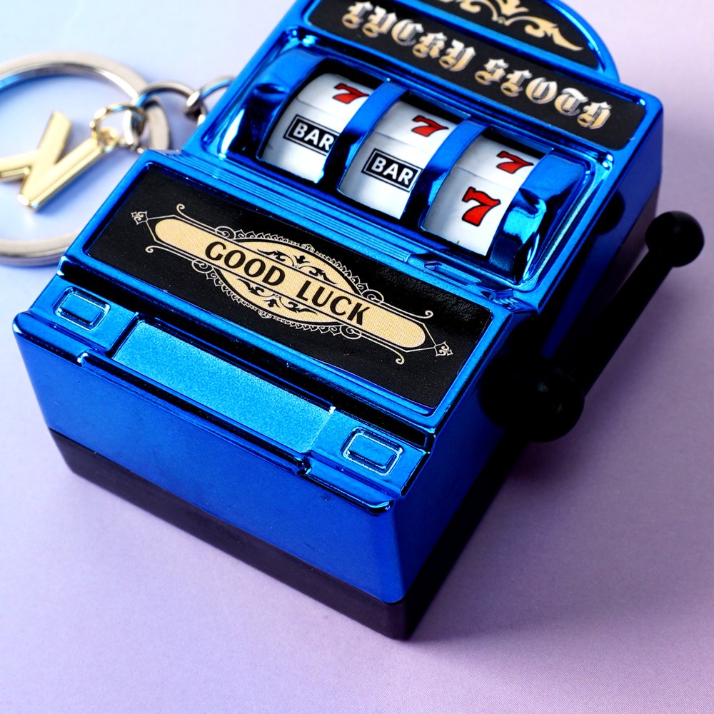 This keychain features a charming retro casino design that perfectly mimics the look of a classic slot machine. It is available in six different colours, each showcasing a unique shine and character. The body adopts a three-dimensional shape, the shaft can rotate freely, and the pull of the lever triggers the "game" moment, with amazing details. The customizable initials accessories make it full of exclusivity.
