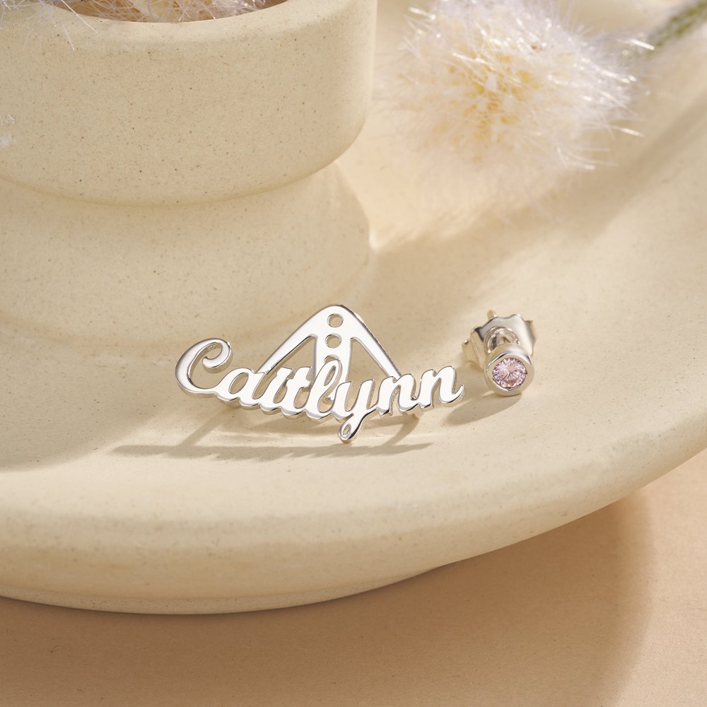 Whether it's her birthday, anniversary, or any other significant milestone, these Personalized earrings make a thoughtful and memorable gift. The combination of her birthstone and engraved name symbolizes her unique identity and celebrates the special moments in her life.