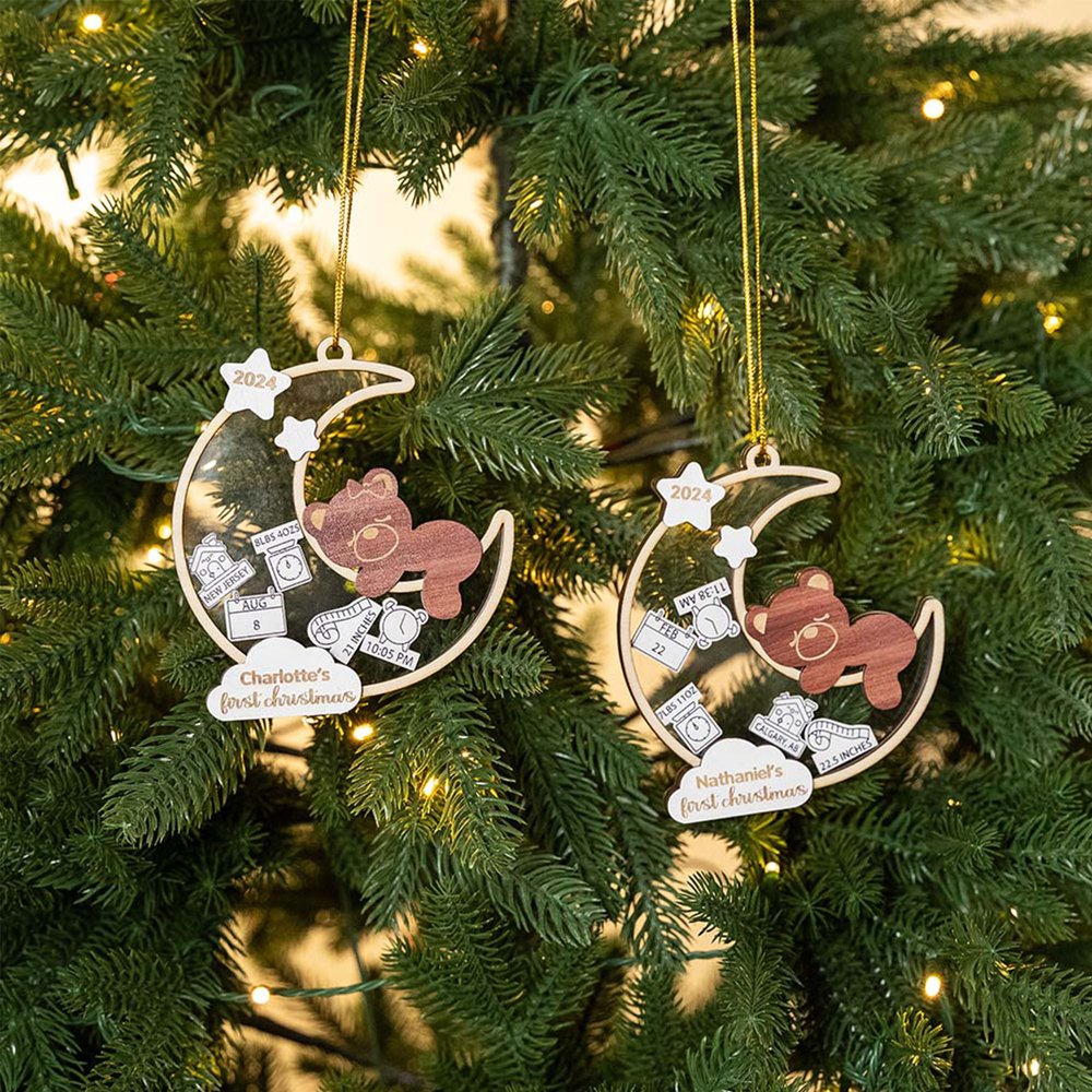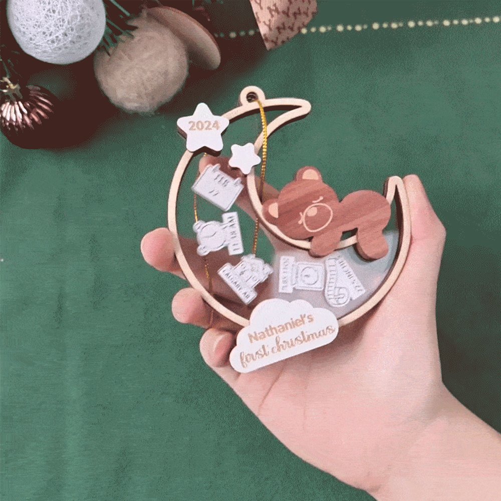 Featuring a warming bear and a romantic moon-shaped design, gently shake it, instantly brightening the festive atmosphere. The interior can be laser-engraved with precious information such as your baby's name and date of birth, cleverly combining details of their growth with Christmas elements to create a unique first Christmas souvenir for your child.
