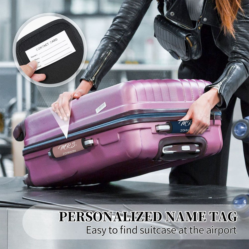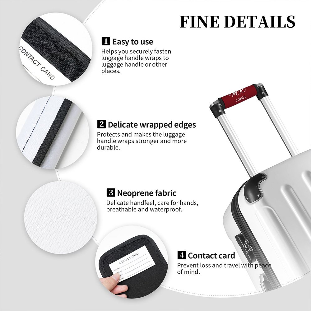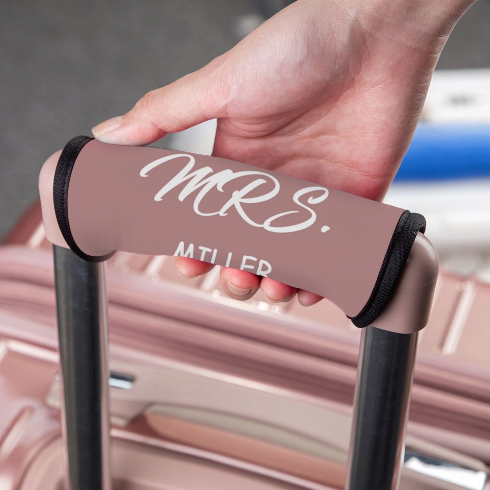This luggage-carrying handle protector is customized for newlyweds or travelers. You can choose the title of Mr. or Ms. and incorporate the last name and exclusive text into the design to add a romantic and Personalized meaning. Whether you are traveling on your honeymoon or a daily basis, this carry handle protector can be a unique symbol and add a distinctive touch to your luggage.