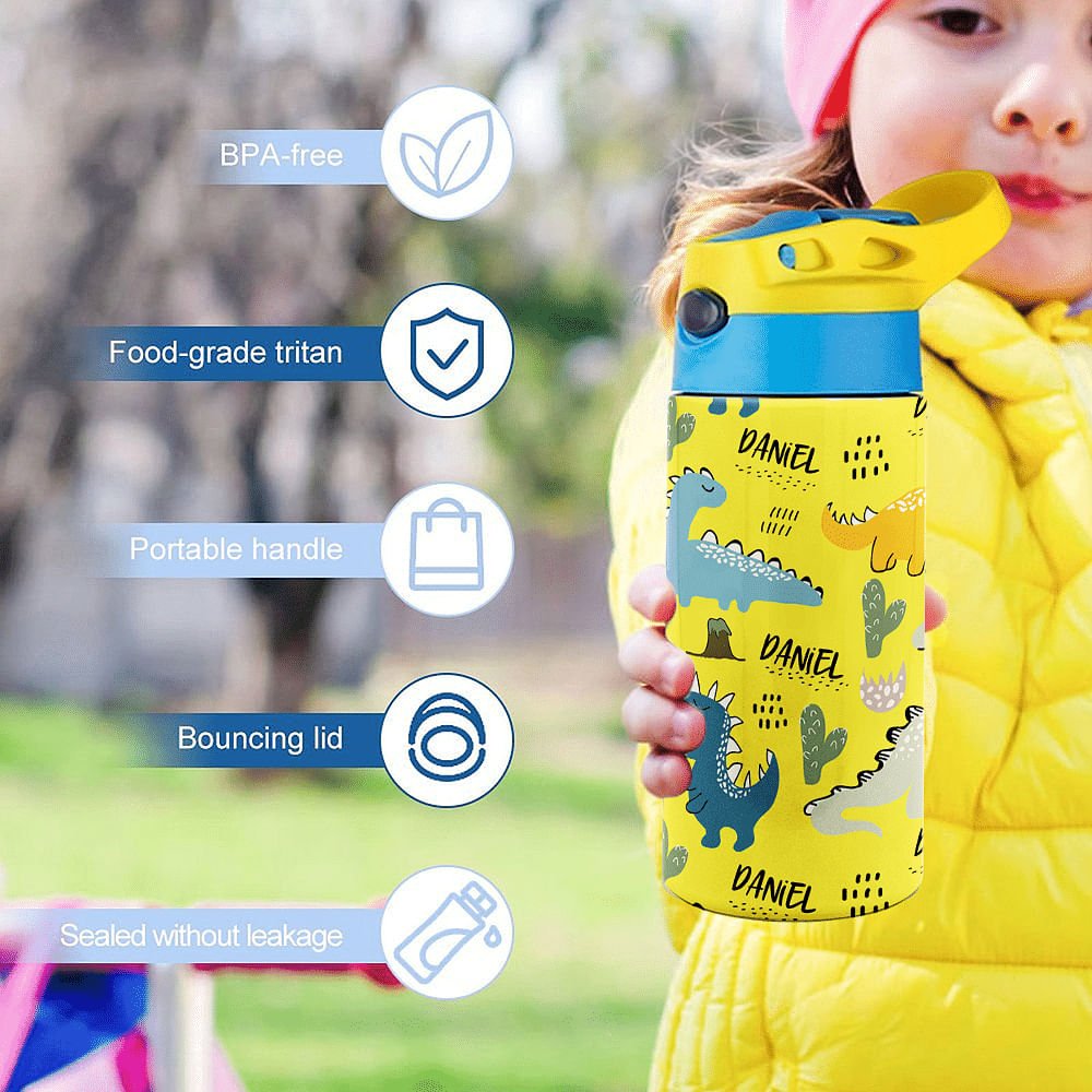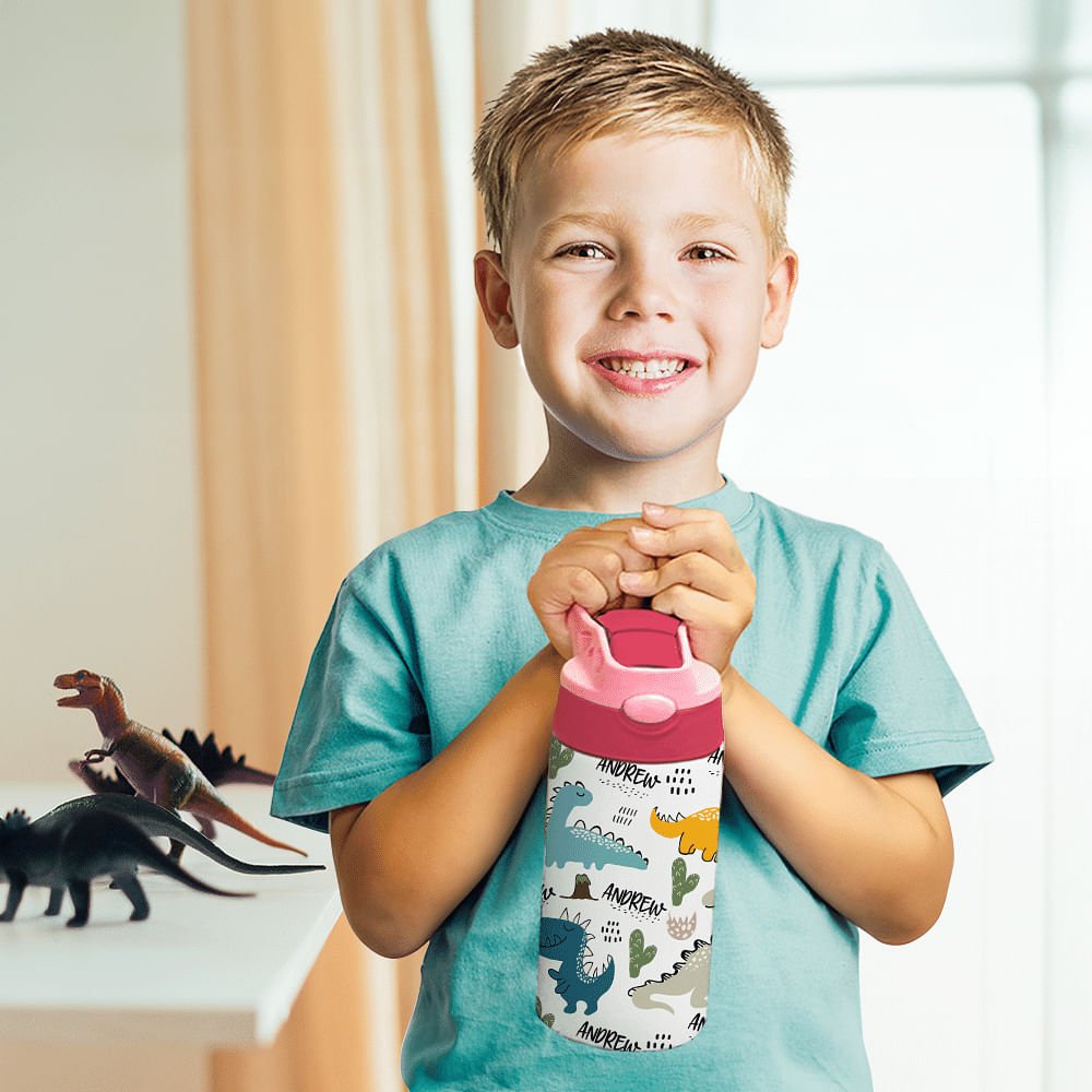 This water bottle is not just a water bottle, it's a canvas for your child's imagination. With its colourful, cute cartoon dinosaur theme and the option to customize with your child's name, it's a truly unique and Personalized gift that will surely excite any child.