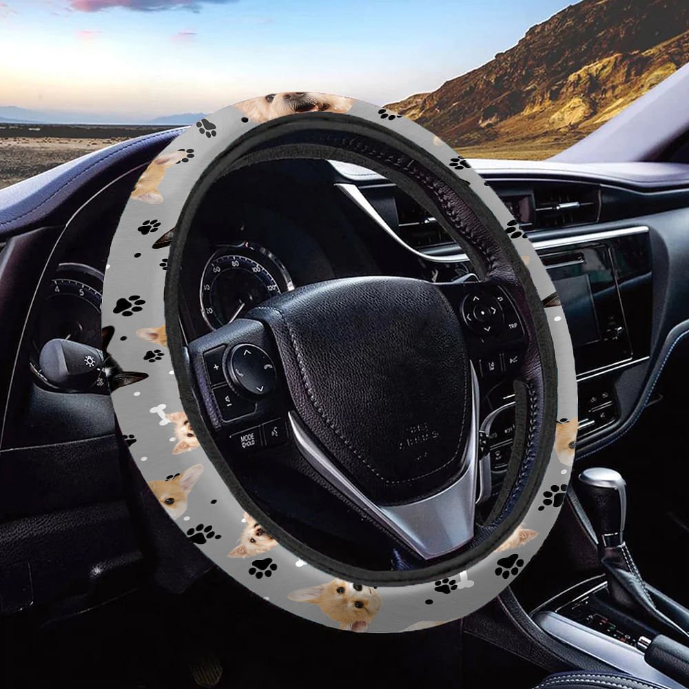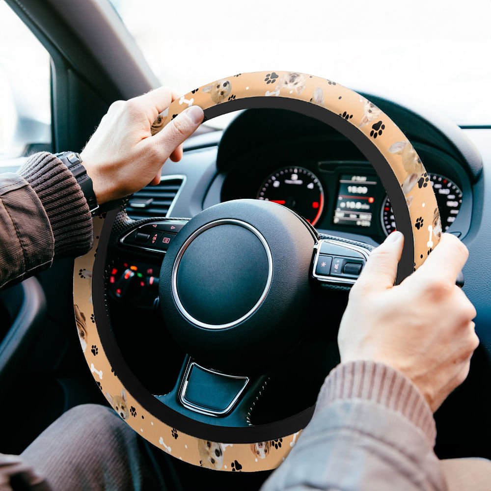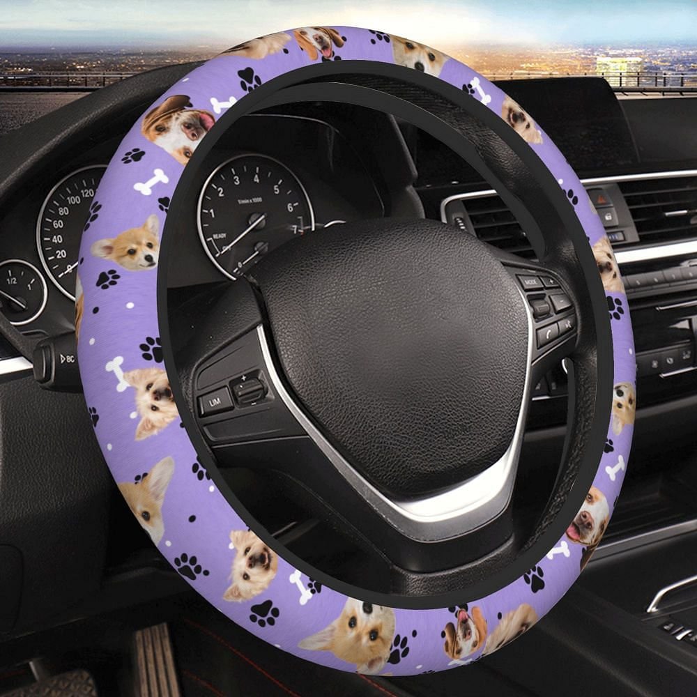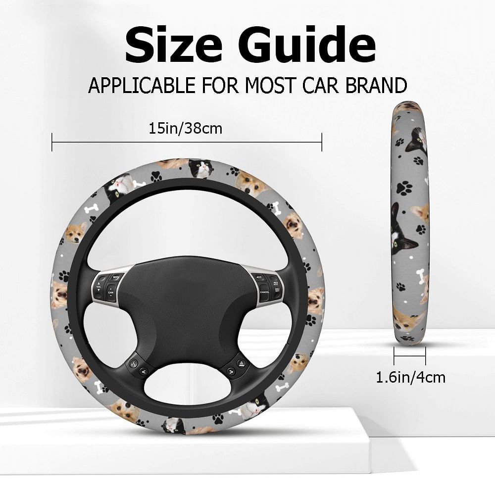This steering wheel cover is designed with cute pet patterns. You can upload 1-3 photos of your pet, and there are also paw and bone patterns around the pictures to make the steering wheel cover even more cute—10 different colours to enrich your choice.