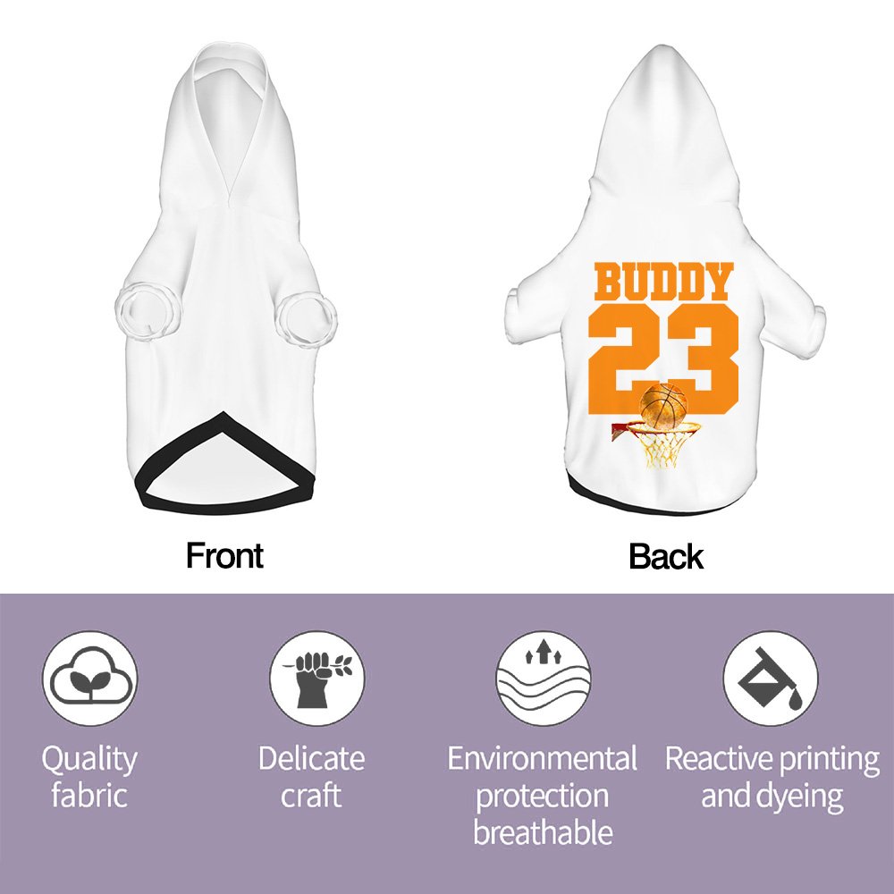 This pet hoodie is the ideal gift for pet lovers and owners who want to create a special and unique piece of clothing for their furry friends. This hoodie can be customized with different ball patterns and your pet's name and number, showing the love between pet and owner, making it a truly unique piece that can capture unforgettable moments of your dog.
