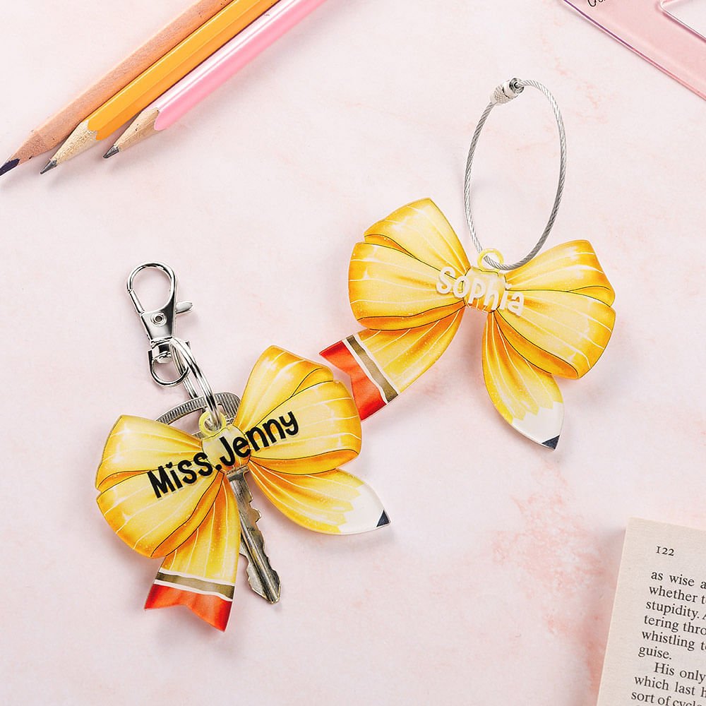 This keychain is designed with delicate pencil bow elements, and you can also engrave the teacher's name on it to make this keychain more special. Two different colours and styles make your choices more diverse.