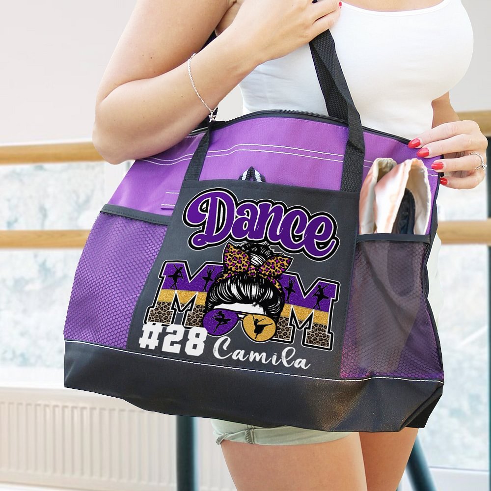 This stylish tote combines dance elements with customization for a chic yet sporty bag. The words "DANCE MOM" stand out, and animal print elements are incorporated into the letters "MOM," adding fun and vitality. Available in various colors, you can easily find a design that suits your style and personality, making it the perfect accessory for any active lifestyle.