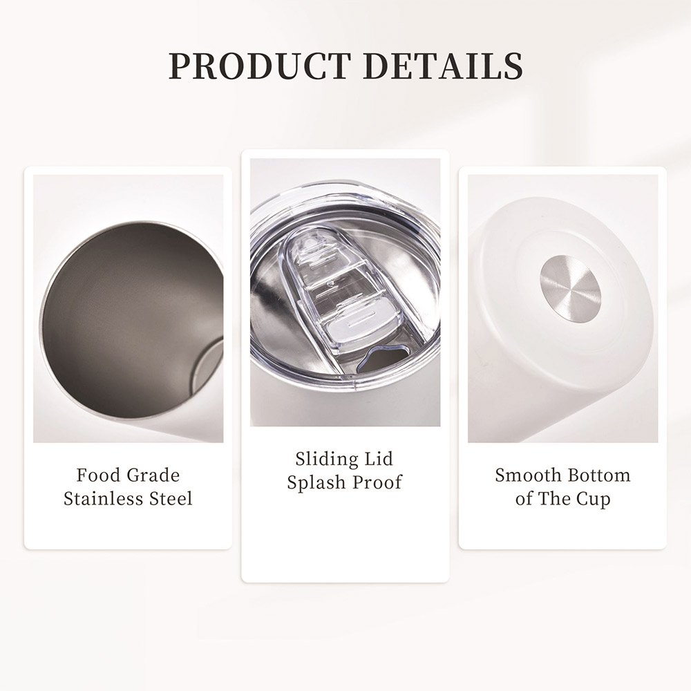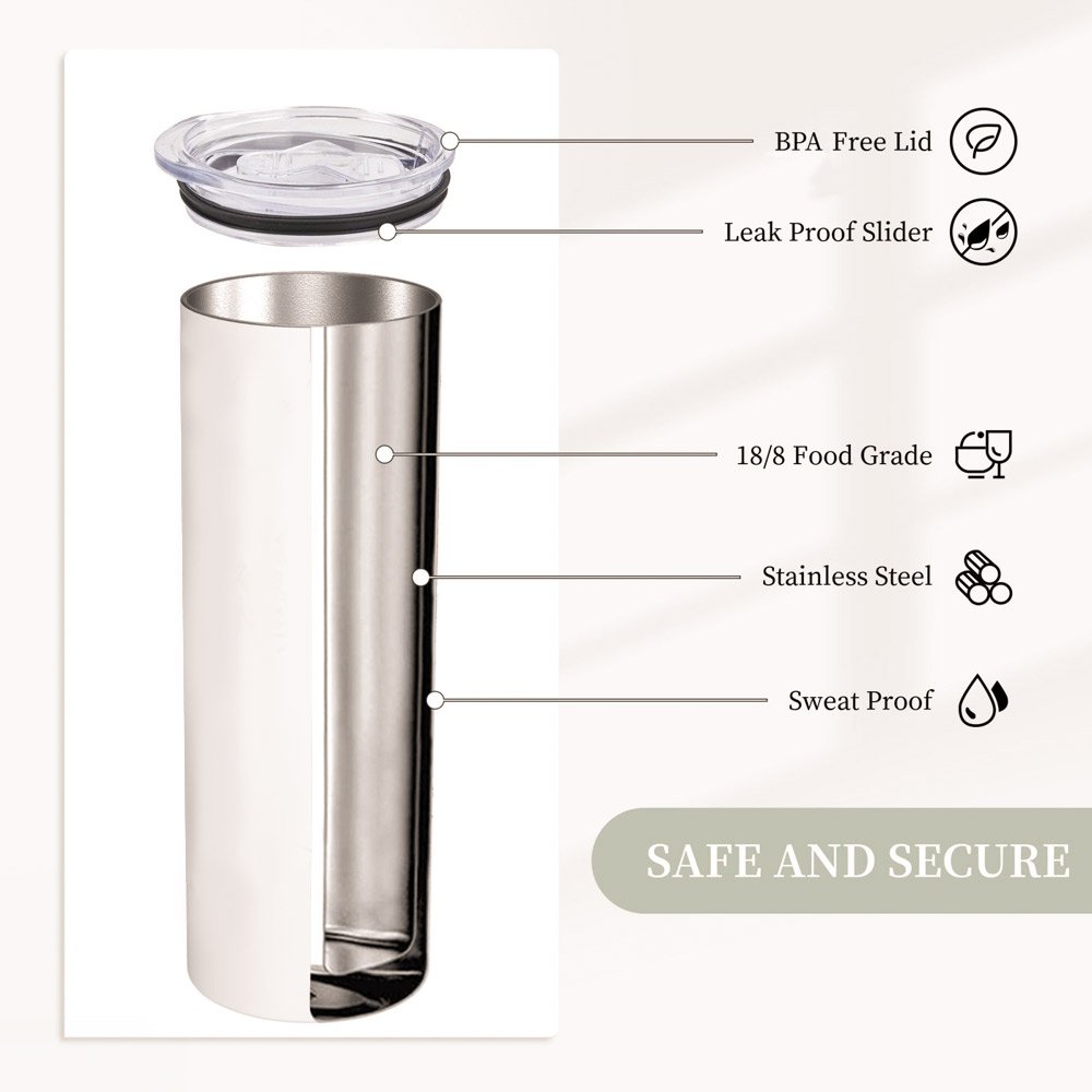 Our tumblers are made of high-quality food-grade stainless steel that will stand the test of time. It keeps your favorite drink at the perfect temperature, whether you want to sip a refreshing juice or enjoy a hot tumbler of coffee, and it can help you do just that. It's also stain-resistant and easy to clean.
