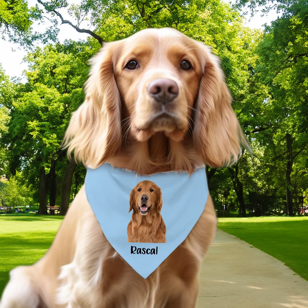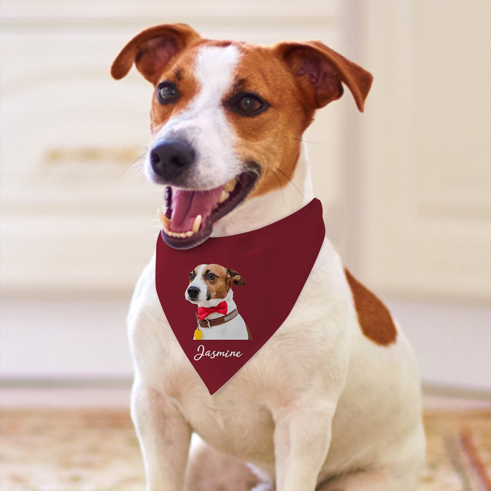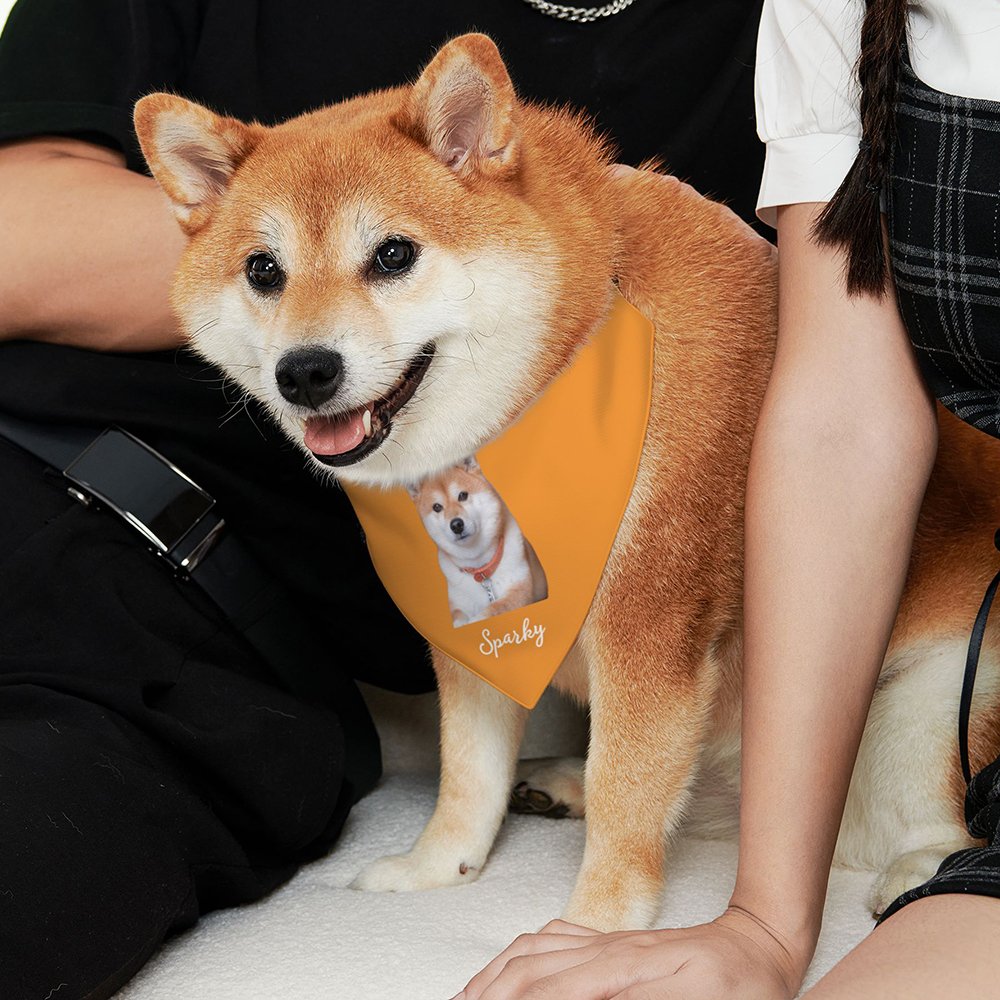 This cute pet bandana can be customized with your pet's picture and name. This stylish accessory is sure to make your pet friend look even brighter. There are ten different colours for you to choose from, and I'm sure there will be one you like.