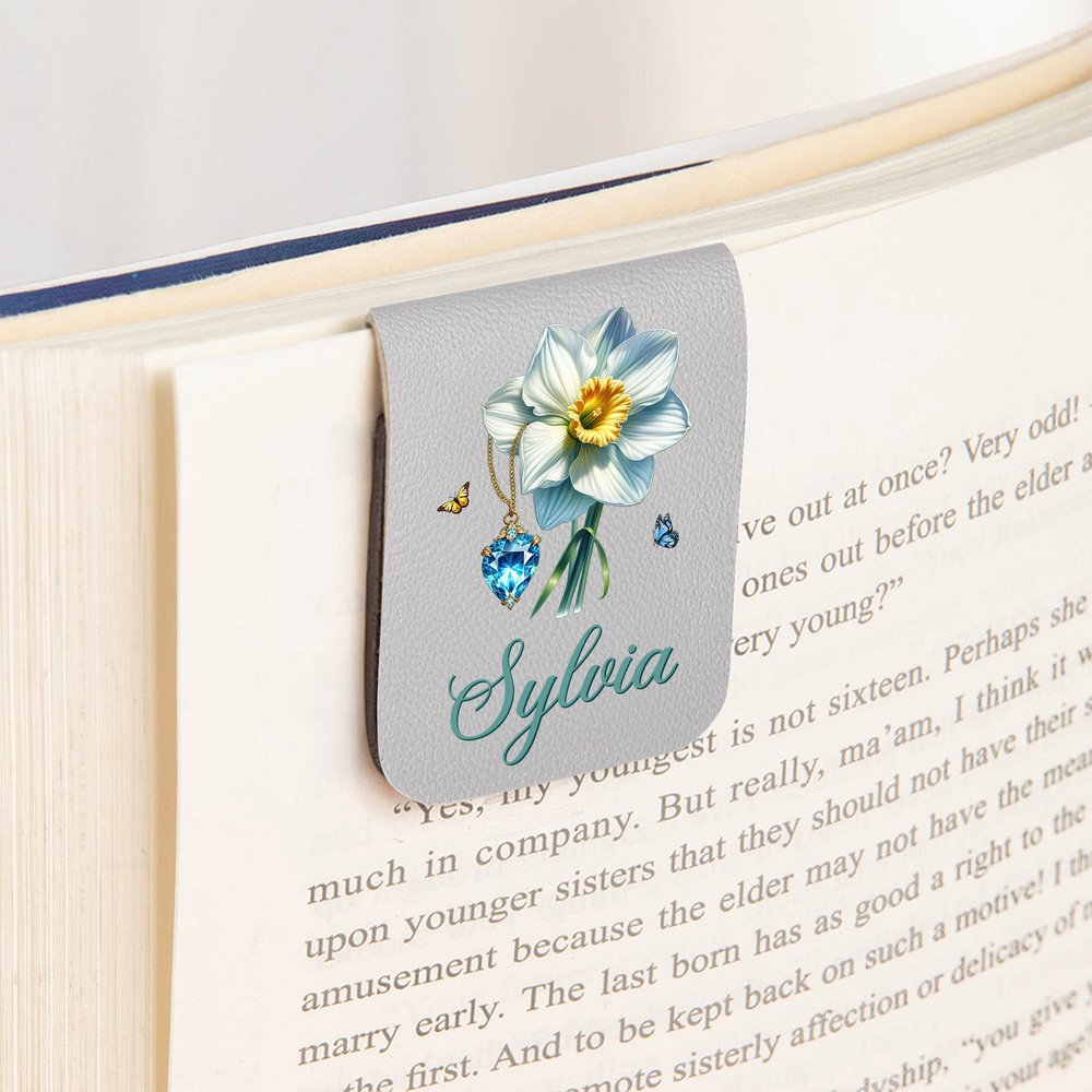 Personalized Multicolour Retro Birthstone Birth Flower Magnetic PU Leather Bookmark Clip with Name Birthday Gift for Book Lovers Bookworms