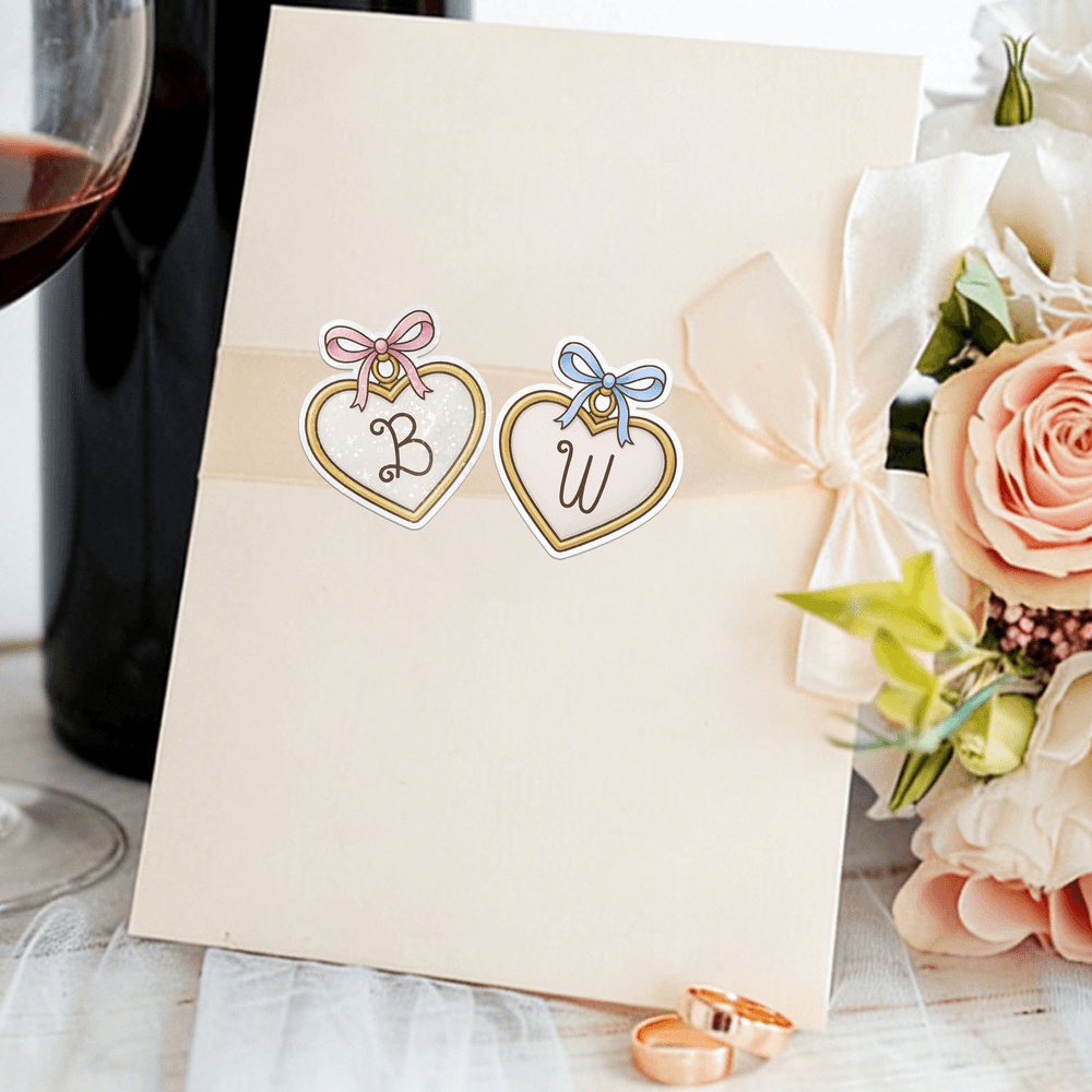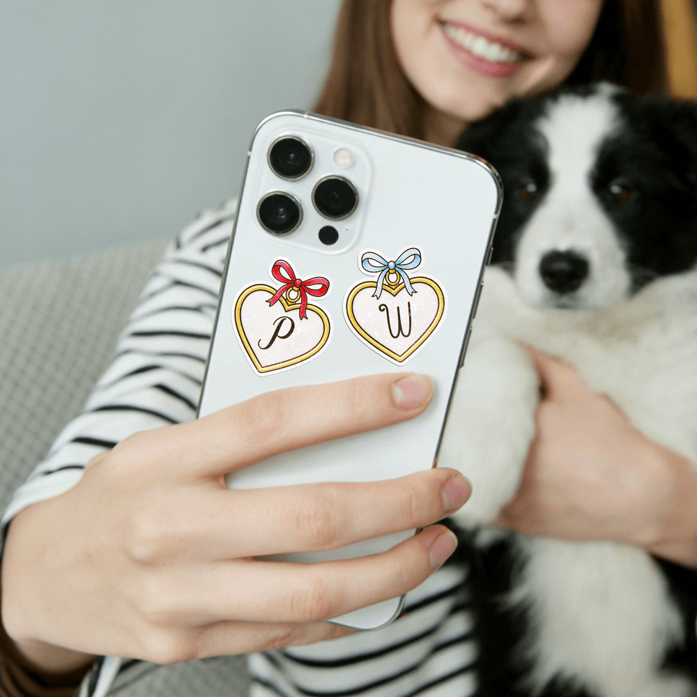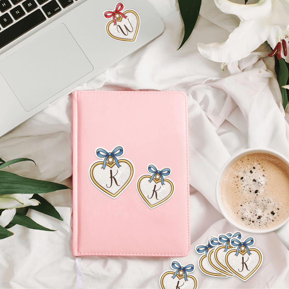 Designed as a charming heart pendant, this custom sticker pairs an initial with a cute bow for a romantic, standout look. Turn your favorite moments into a one-of-a-kind keepsake that celebrates love and connection.