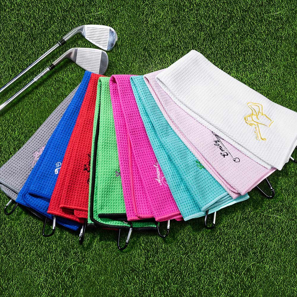 This colourful embroidered waffle golf towel is specially designed for female golfers. It captures the elegant and attractive posture of female golfers when they swing the club, 3 female character embroidery patterns for you to choose from, and a customized embroidery name. Whether it is for yourself or as a gift, it can show your love and taste for golf.