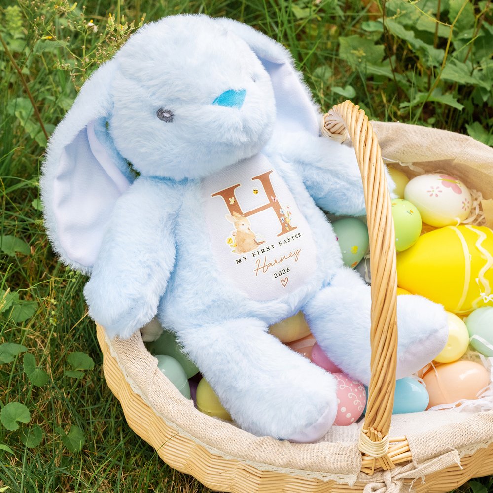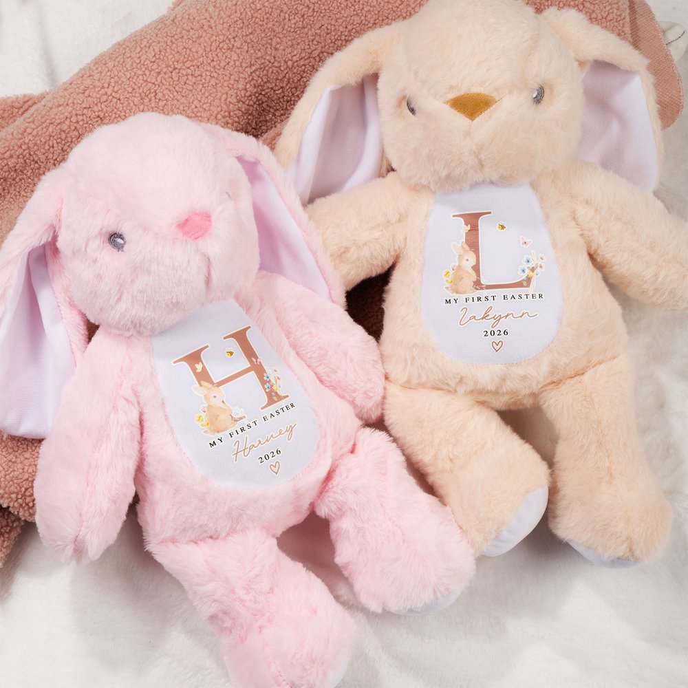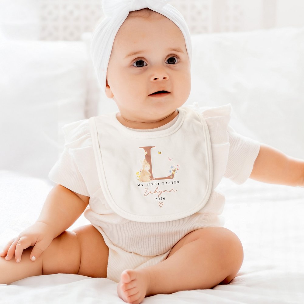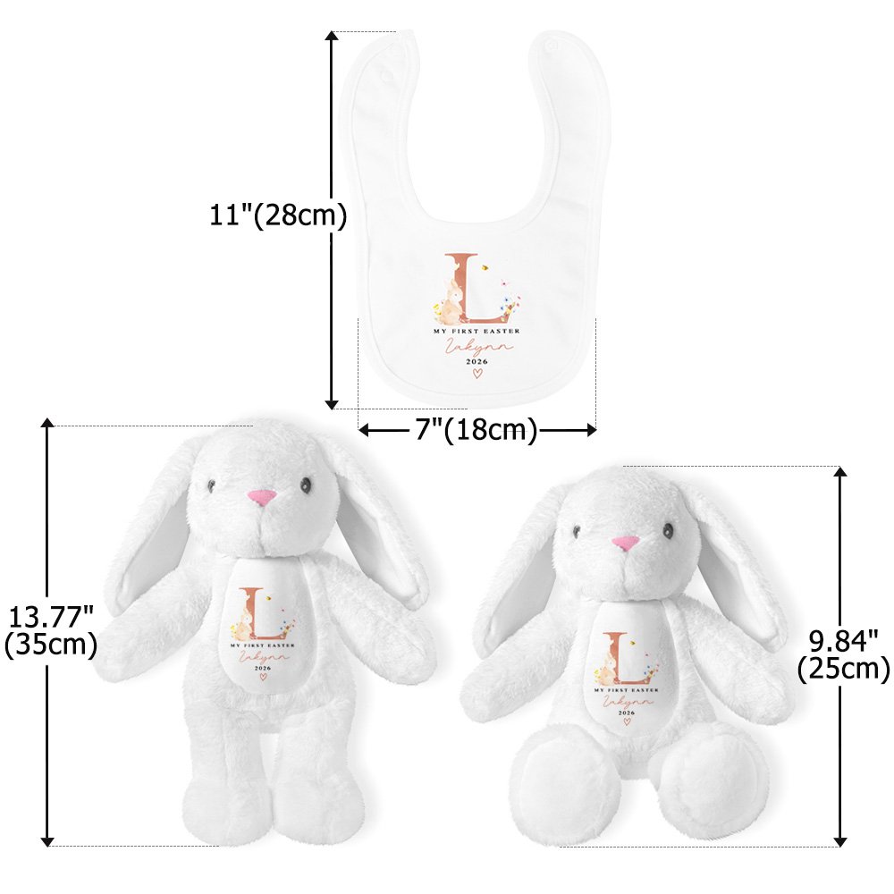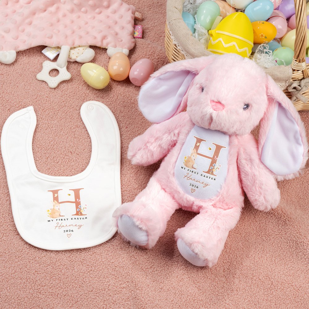 Featuring a cute "My First Easter" theme and an irresistibly sweet bunny, this collection is designed to celebrate a baby's first Easter in a memorable, heartwarming way. You can choose the plush bunny toy, the matching bib, or both as a set. The personalized name option makes each item an extra-special keepsake.