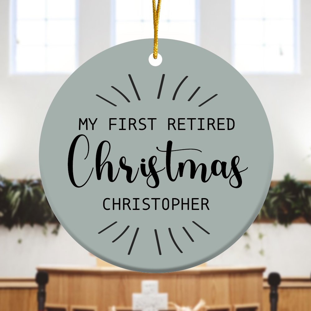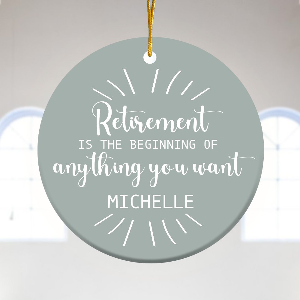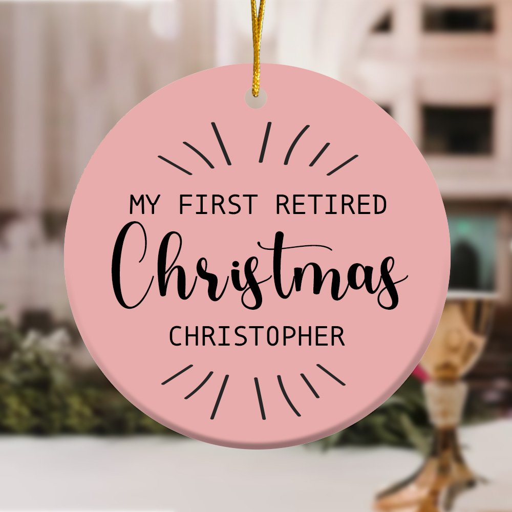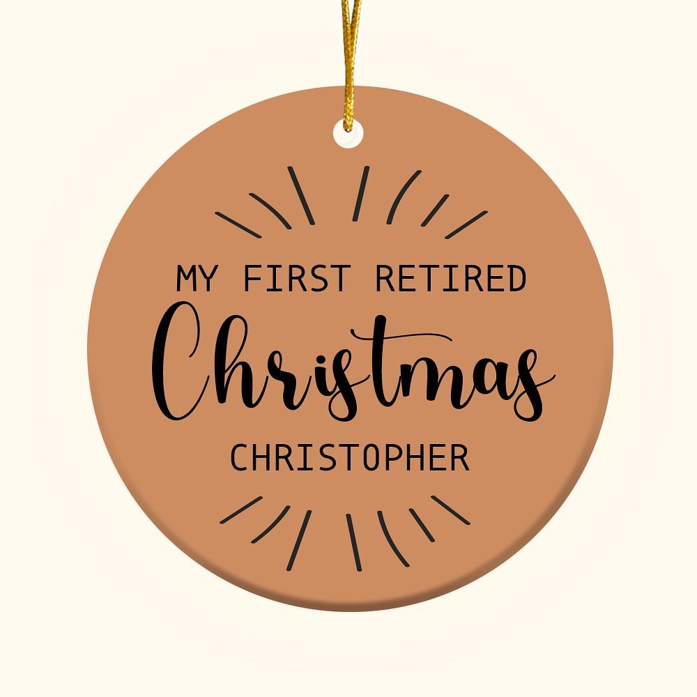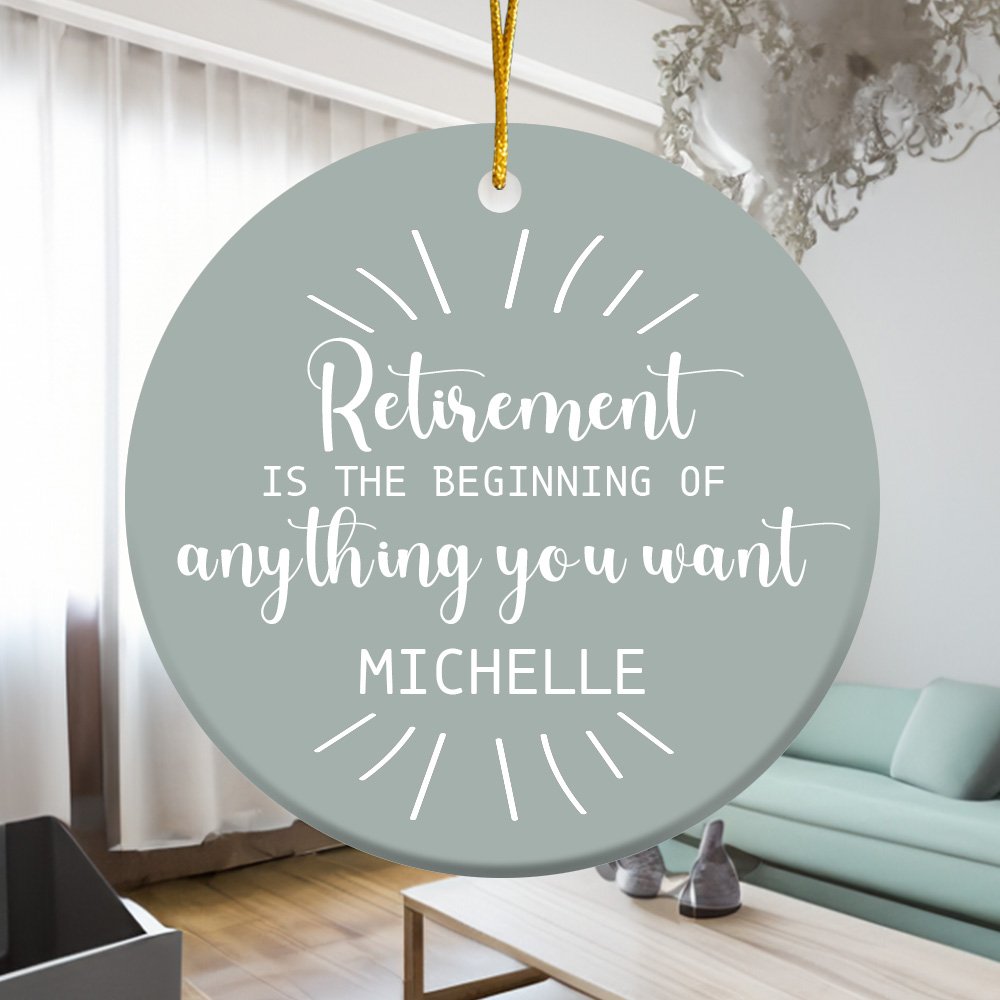 This ornament features a simple, beautiful design with a solid background, line, and text. The slogan "My First Retired Christmas" or "Retirement is the Beginning of Anything You Want" in the middle is eye-catching, representing a significant milestone in your life. You can Personalise it with the retiree's name to express your gratitude for their years of dedication and hard work.