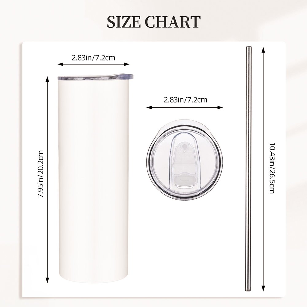 Measurement: 20oz - 2.83β€œTop Diameter x 2.68"Bottom Diameter x 7.95"Height(7.2cm x 6.8cm x 20.2cm)