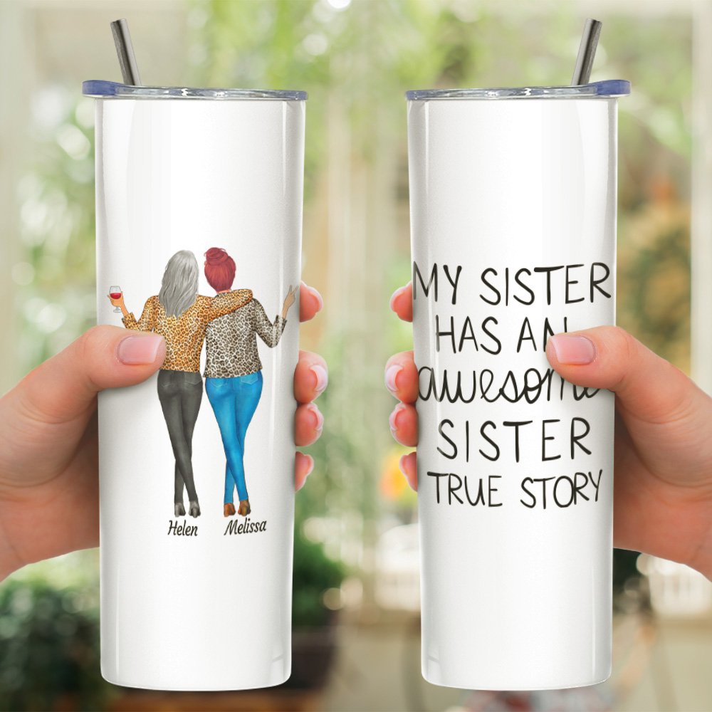 Personalized My Sister Has An Awesome Sister Food Grade Stainless Steel Straight Skinny Tumbler with Straw Gift for Sisters