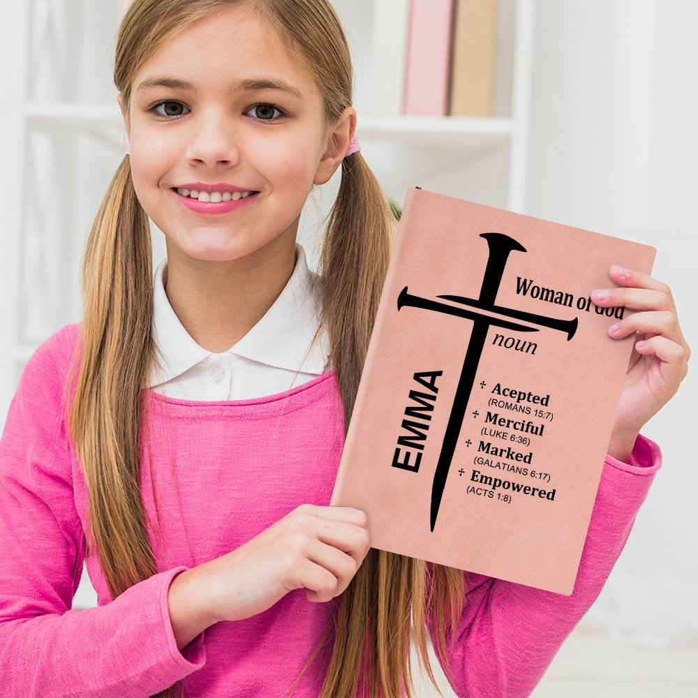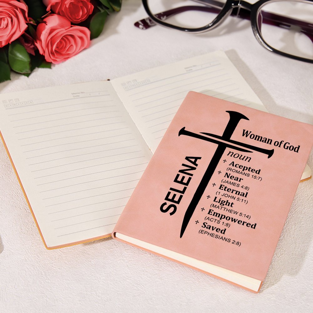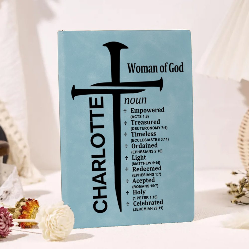 This notebook features a cross made of long nails, with a Bible verse design and the title "Woman/Man of God". You can choose the Bible text with the same letters as your name according to your needs and add your own name, which not only increases the uniqueness of the notebook but also makes it a perfect carrier for recording personal beliefs, growth, or experiences.