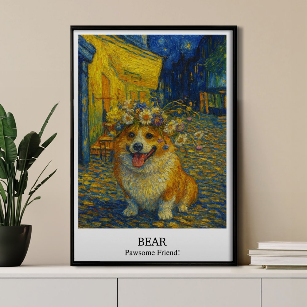 Personalised Night Cafe Oil-Painting Style Photo Poster Painting Framed Painting with Name and Text Birthday Anniversary Gift for Family Friends