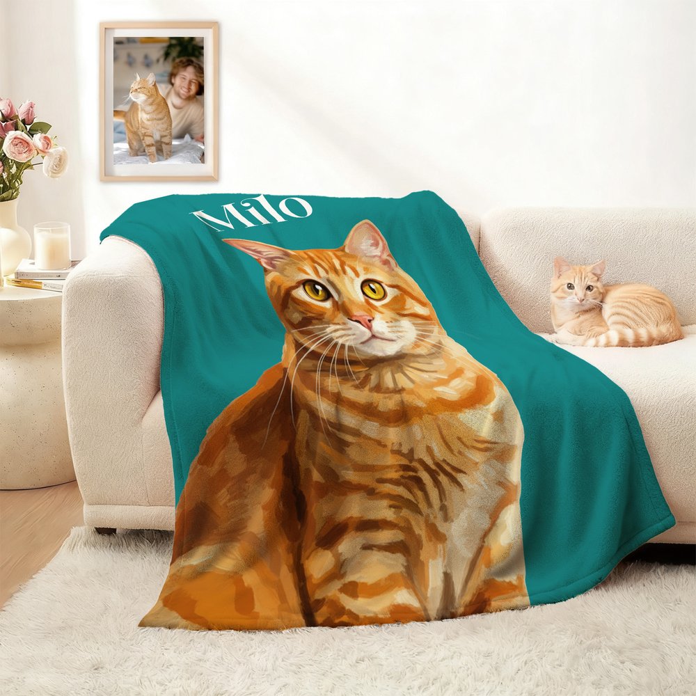 Designed with "Capturing moments with your pet" in mind, this blanket allows you to upload photos of your pet and transform them into classic oil painting-style portraits, giving your pet an artistic and recognizable look. You can also customize your pet's name, giving the blanket a unique and personal touch.