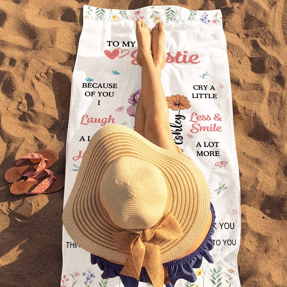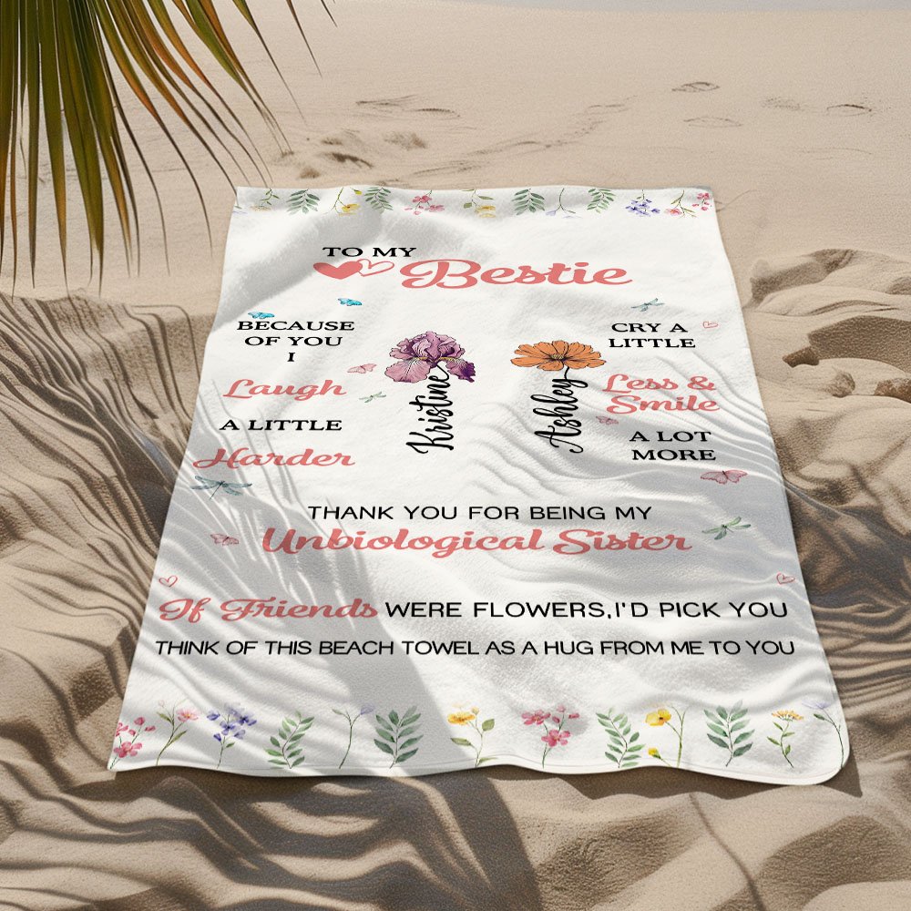 Personalized Oversized Quick Dry Microfiber To My Bestie 2 Birth Flowers Beach Towel with Names Travel Essential Birthday Gift for Sisters Friends