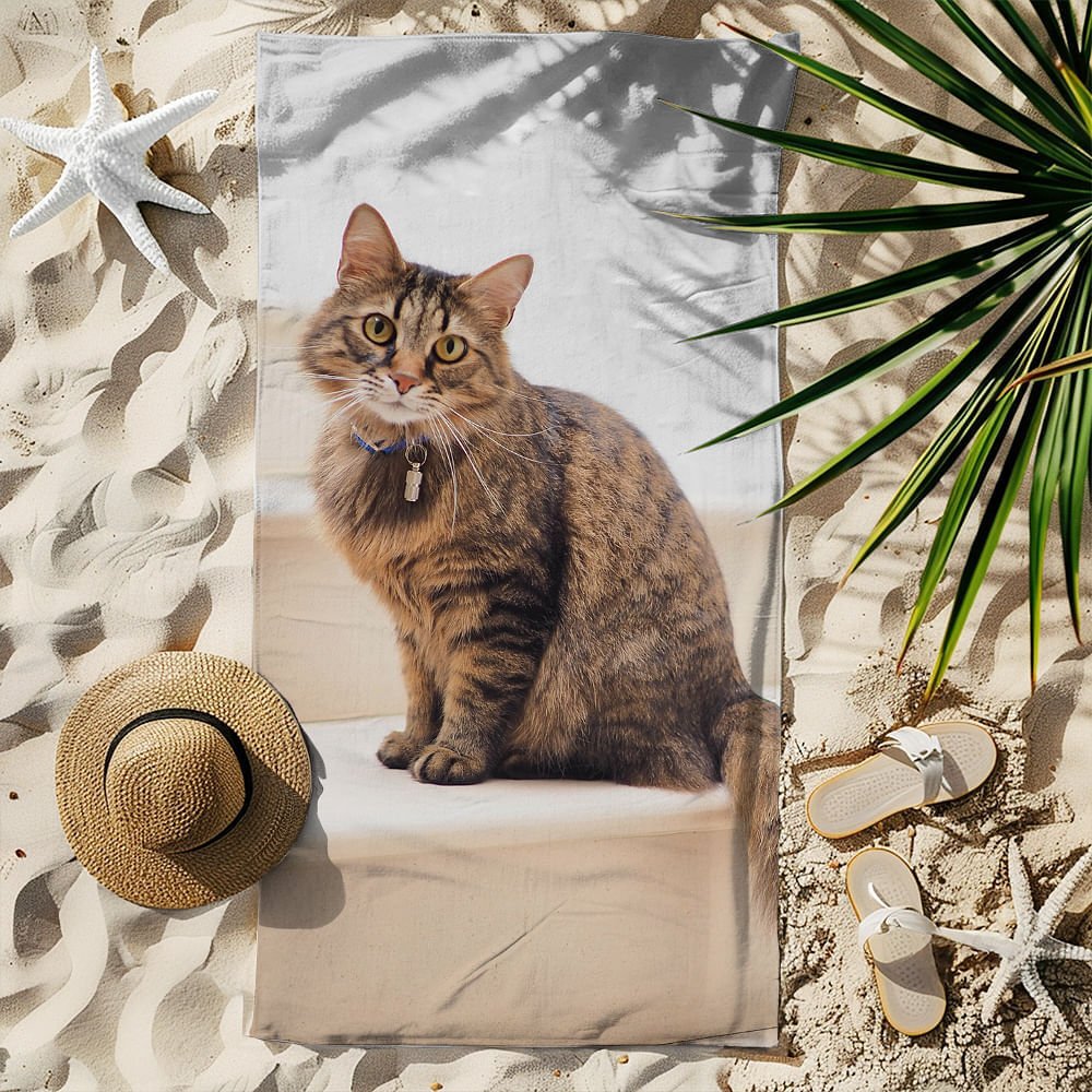 Add a personal style to your beach experience by customizing the towel with your pet's name and photo. This Personalized feature makes it a thoughtful gift for pet lovers or a special treat for yourself. Stand out from the crowd with a unique towel that proudly displays your pet.