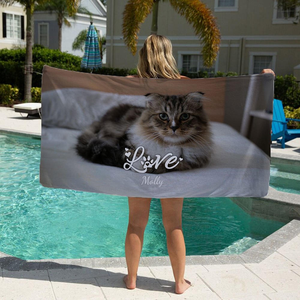 Surprise a pet lover with this Personalized oversized beach towel. It's a thoughtful and unique gift that celebrates their love for their furry companion. Perfect for birthdays, summer travel, or beach-themed parties, this towel is a beautiful reminder of the special bond shared between a pet and their owner.